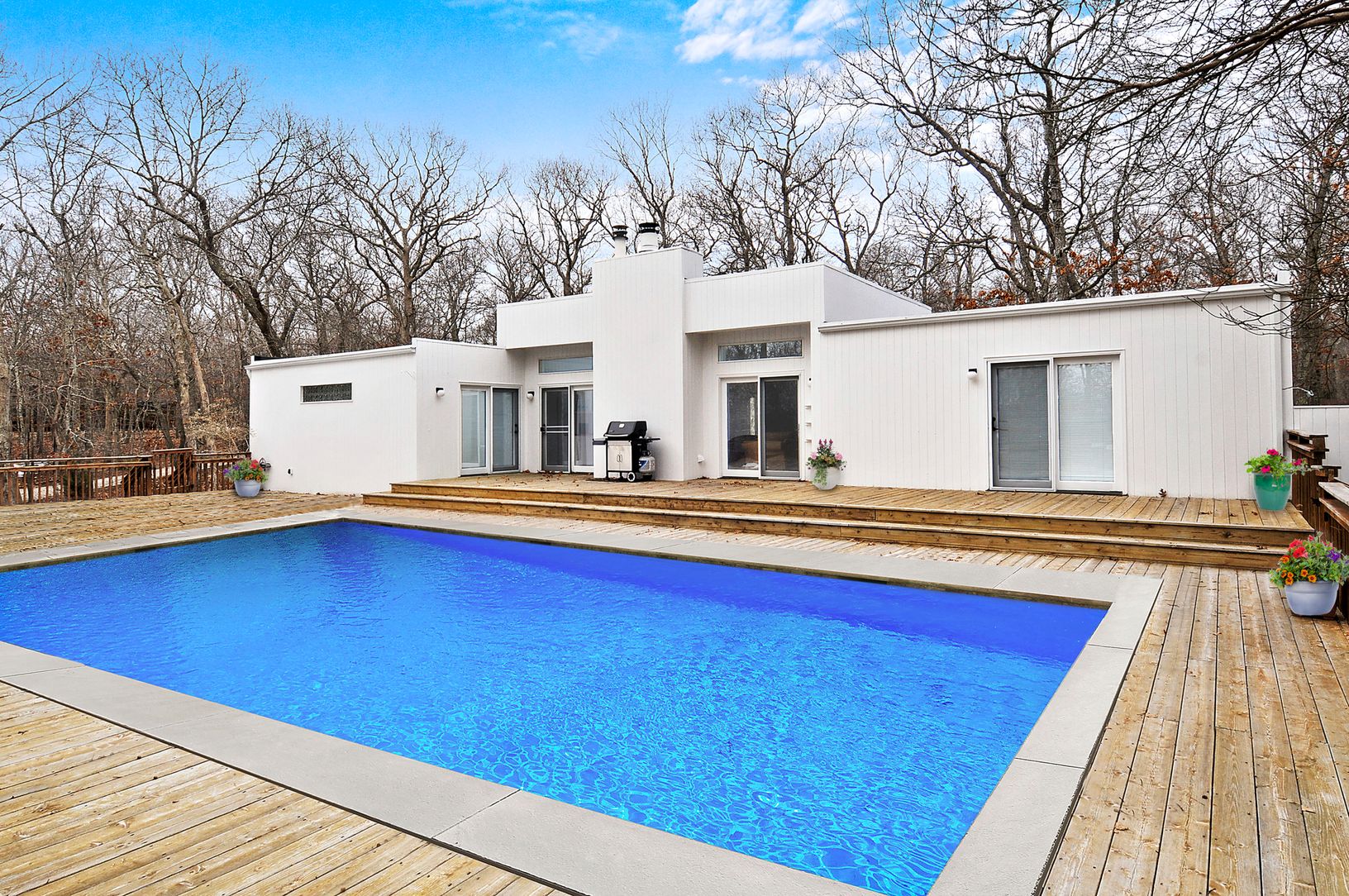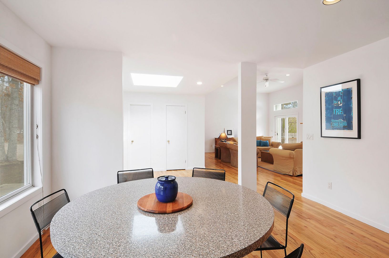 SOLD. A wonderful contemporary ranch on .94 acres in the Northwest Woods of East Hampton. The home features 1950 square feet of living space. Enter the home in a sky lit foyer and you are welcomed with a fabulous open-style living space. The kitchen and dining areas are combined to offer the perfect gathering spot for entertaining. A half bath is conveniently located in the center of the home. The double height living room is graced with a
