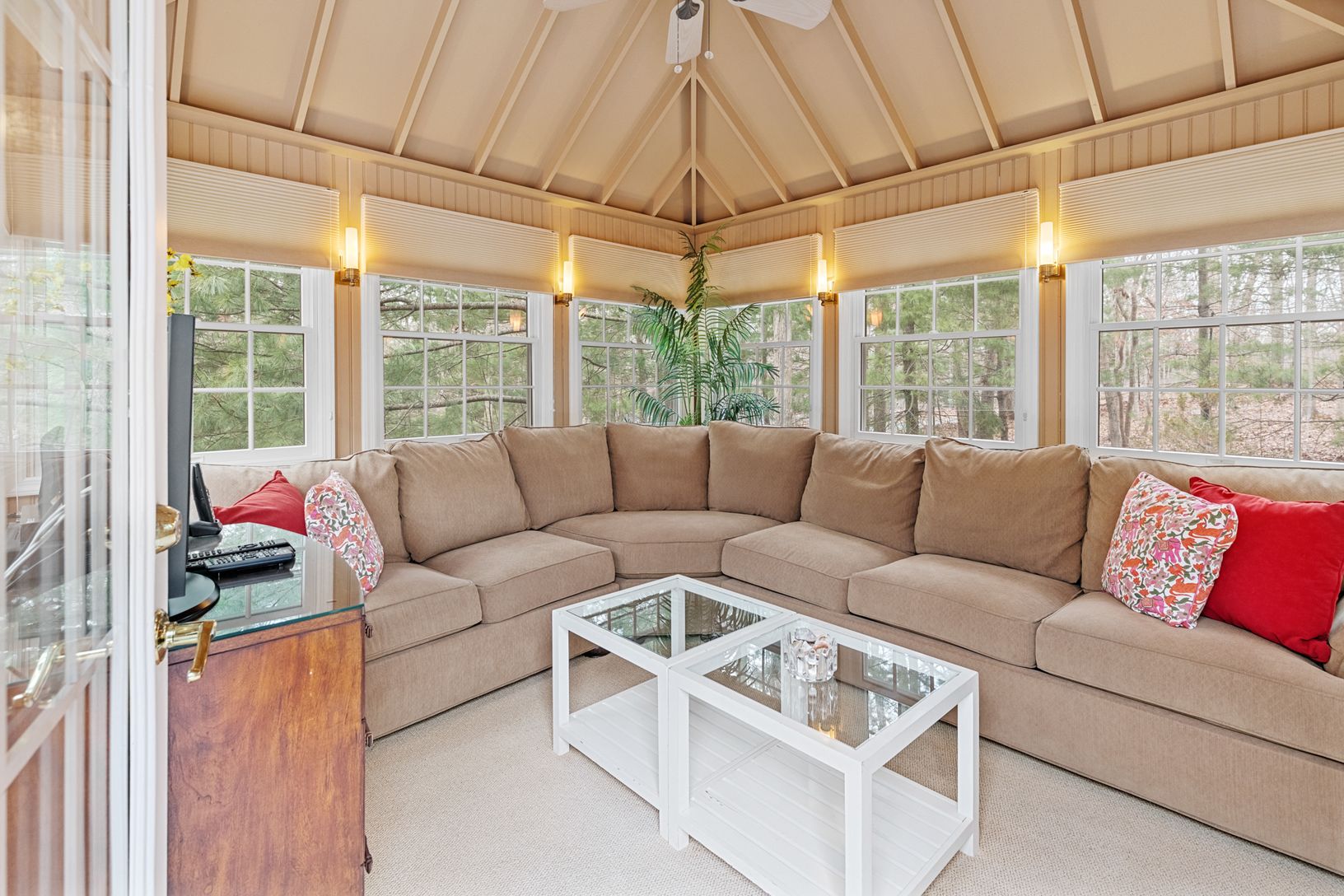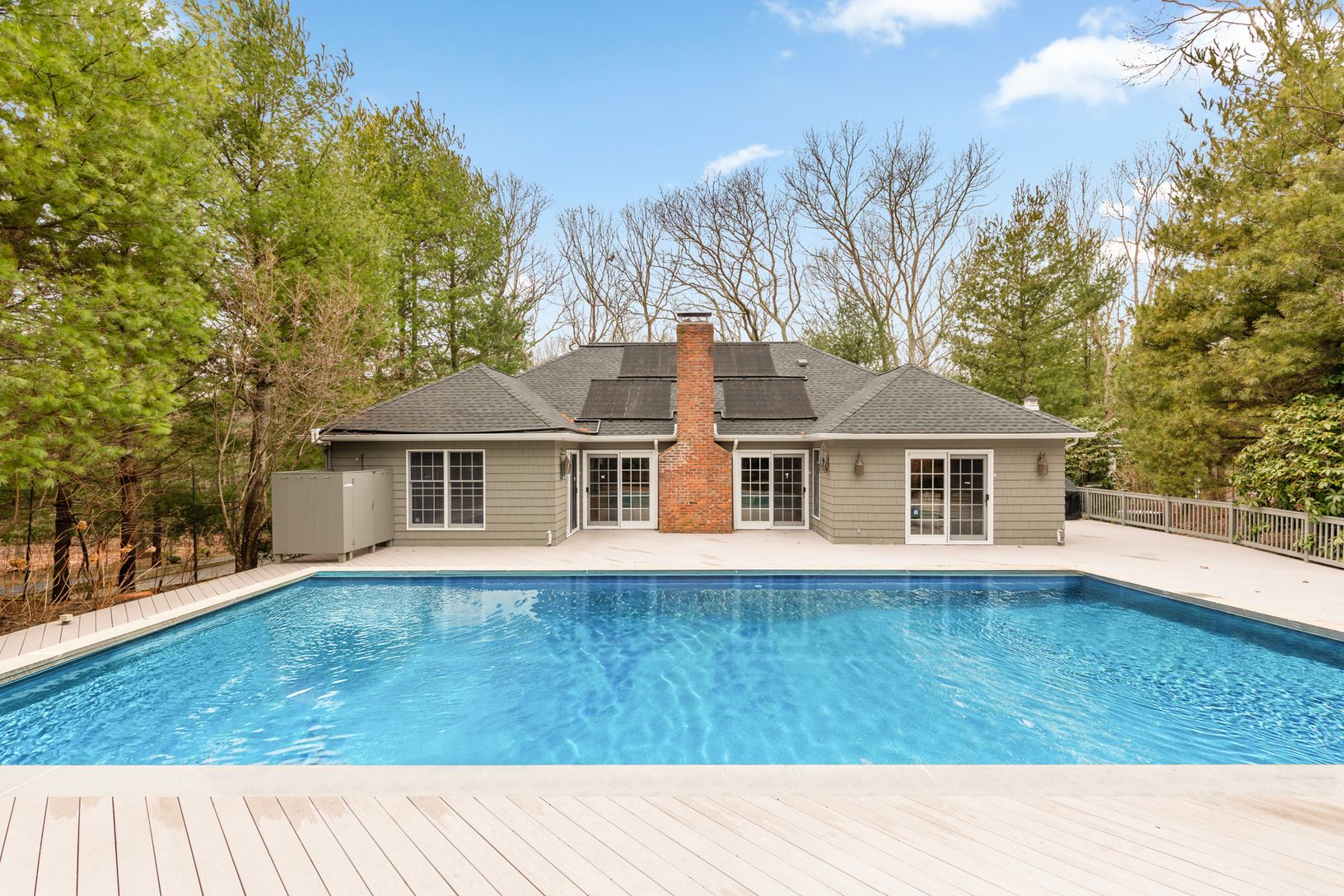 This beautifully home is located in East Hampton Northwest situated on a 1.5 acres and backs up to a reserve. Relax by the heated saltwater pool, rinse off in the outdoor shower, and unwind in the charming gazebo sunroom. Inside, the home features a living room, dining room, kitchen, and a den with pocket doors and a pull-out sofa that can easily serve as a guest room. There is also a