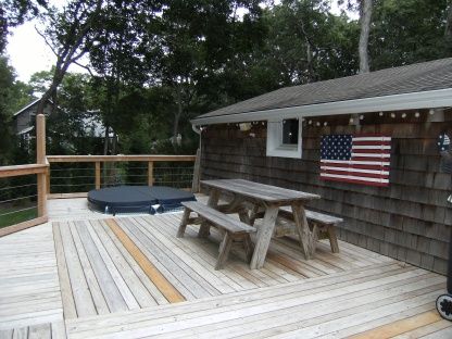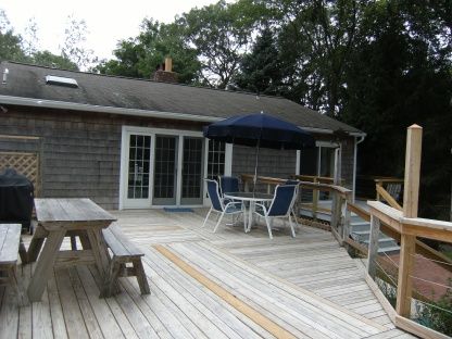 Located in the beachy Barnes Landing area of East Hampton, this home is perfectly priced and in pristine condition. Two bedrooms, one bath, hardwood floor in living room and gorgeous ceramic tile in the eat-in-kitchen. There is a brick fireplace in the living room and one in the full basement! Large rear deck with hot tub and plenty of room for entertaining. Spacious yard with room for a swimming pool, and garage to boot!