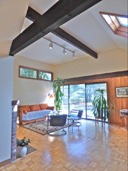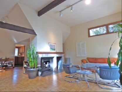 Located down a long, private drive on a 0.53 acre flag lot, this unique home was designed by Architect Peter Wrangell, as his personal studio and retreat. Prime location surrounded by miles of woodland trails through hundreds of acres of Land Preserve, yet only minutes to the beaches and Hampton Villages. New improvements in 2014, it offers four levels of living space, with four bedrooms and two baths (with potential for two additional bath