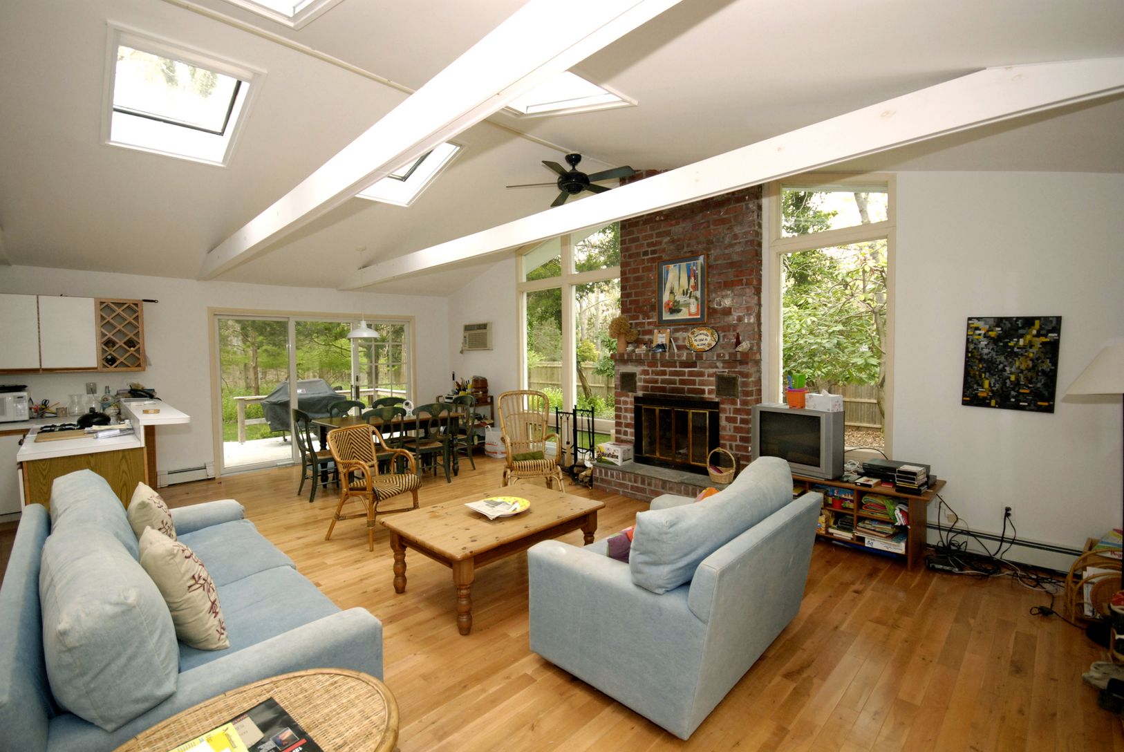 Open living space and cheerful surroundings greet you as you enter this sunny home. There is a wonderful brick fireplace, surrounded by floor to ceiling windows that allow for abundant light and views of the natural landscape. Located on a quiet side street, a few blocks from a Gardiner's Bay and a short distance to ocean beaches and Amagansett village.