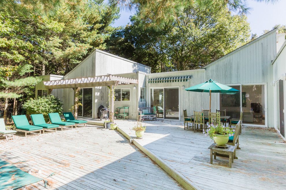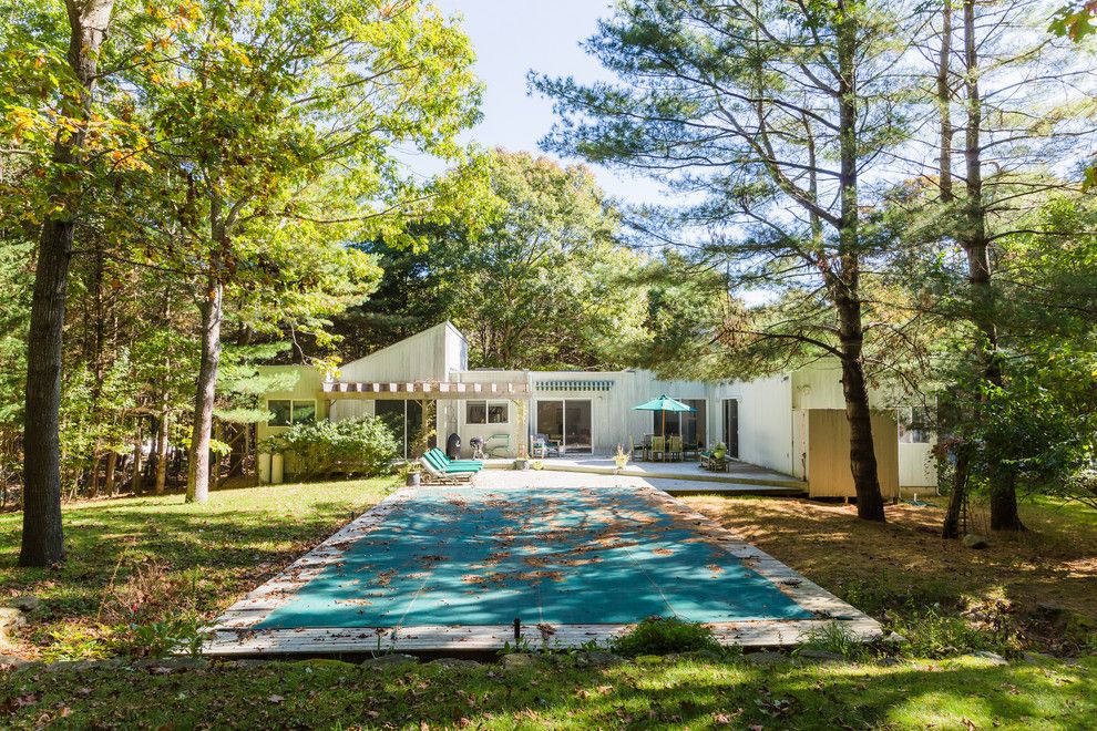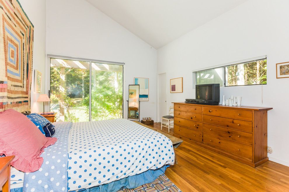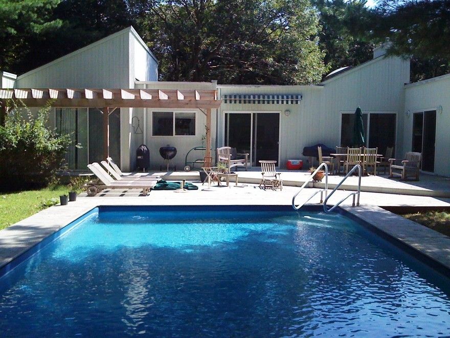 First time offered and new to the market: Four bedroom one level contemporary house in East Hampton's settler landing area with wonderful outdoor spaces. Bright open living area, a well equipped kitchen and large bedrooms. Spacious master bedroom with stunning master bath with separate huge walk-in shower room. Cathedral ceilings and skylights make this house bright and spacious! Outdoors, a large sunny deck, crisp pool and lush landscaping.
