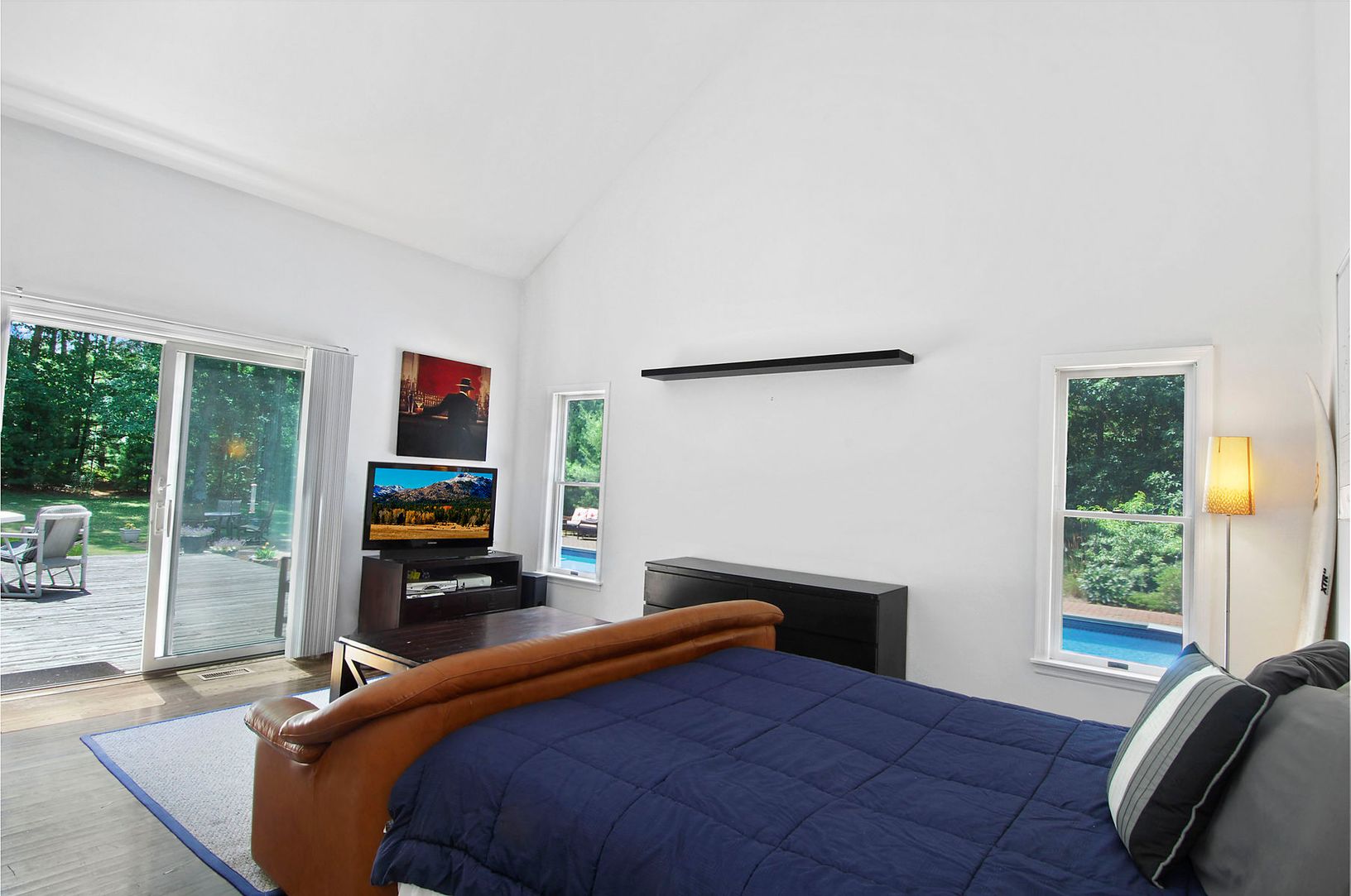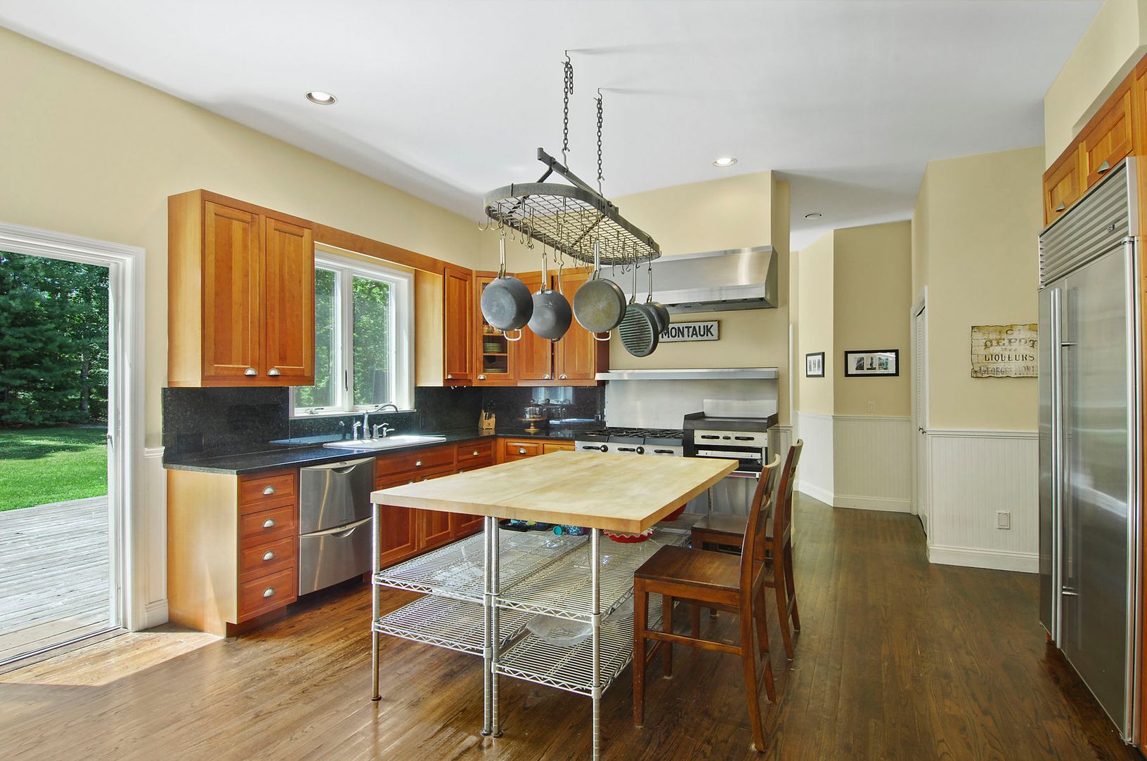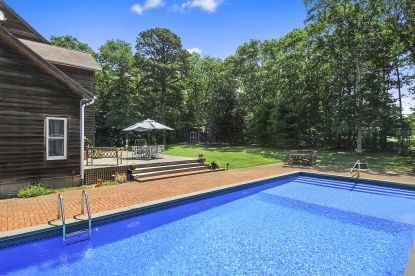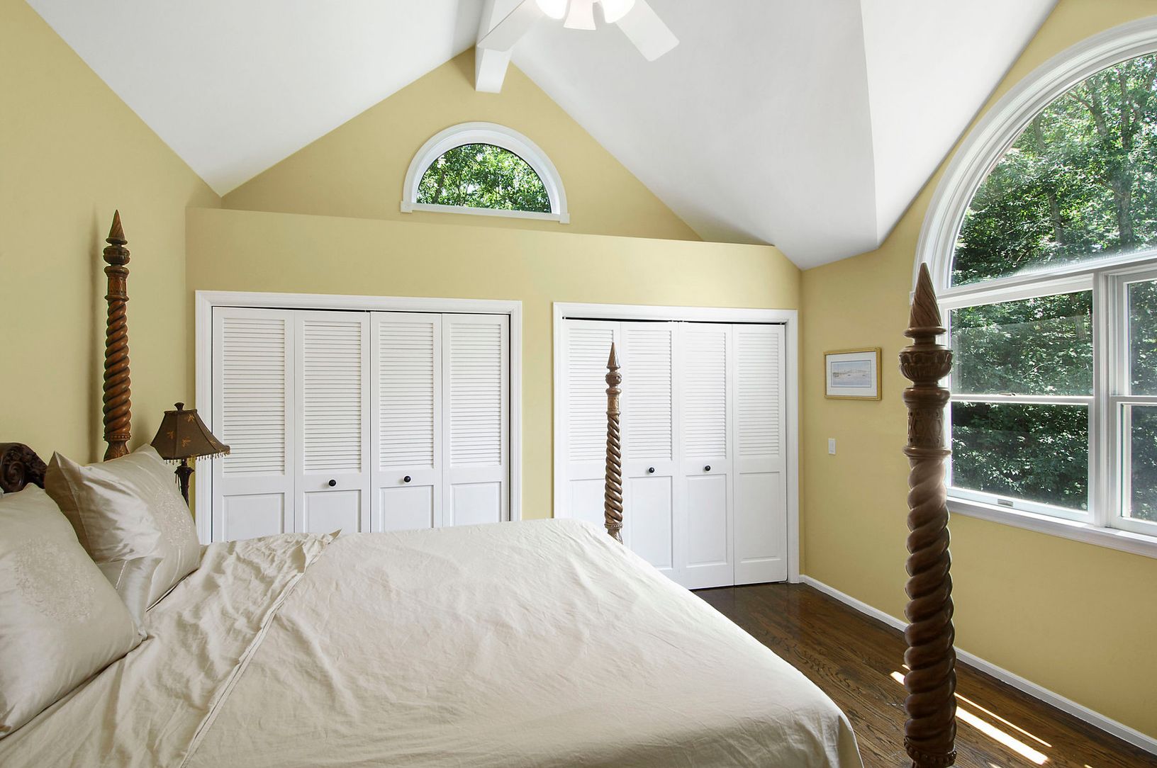 Impressively detailed, this well-designed house is privately sited on 2+/- acres, complete with a large sun deck, brick patio and a heated swimming pool. The 2,700+/- sq. ft. interior features a living room with double-height ceiling and brick fireplace; large dining area, and a charming kitchen with breakfast area and sliding glass doors to the rear deck. All four bedrooms have high ceilings. A total of 4 baths, CAC and a full, finished basem