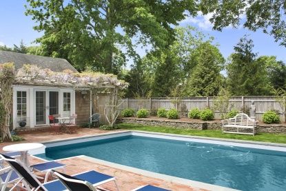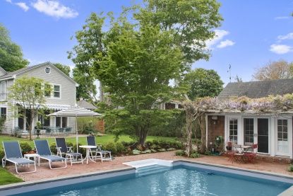 Located on a quiet East Hampton Village lane is a completely renovated home, inside and out, with four bedrooms and two and half bathrooms. This lovely two-story shingled home with pool house maintains its beautiful historical features and all of the top of the line amenities with new plumbing and electrical, to make this a turnkey home with class and comfort. The large family room opens up onto an outdoor dining terrace for outdoor entertaini