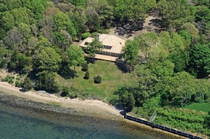 2.2 acre flag lot with 191 ft. of harborfront and a private bay beach on Three Mile Harbor, this property offers a house with 3 bedrooms including first floor ensuite master, a living room with wood burning fireplace, formal dining room, library, 2 car garage, eat in kitchen and fabulous views from almost every room in the house. Room for expansion, pool and tennis. Mooring rights. Priced at land value, this is an exceptional offering with un