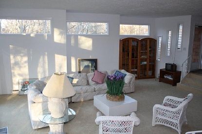Best deal for house and shy acre of property on a coveted street in East Hampton's Northwest Woods. One-level contemporary with renovated kitchen and two and a half baths, three bedrooms, heated pool, oversized garage and room for expansion.