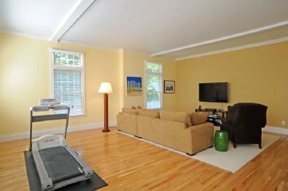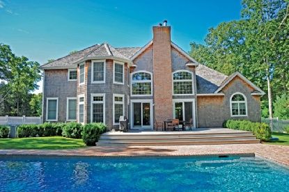 Incredible 4400 +/- sq foot post modern is situated on a shy 2 acre parcel in East Hampton's Northwest. The mint condition, light-filled home with five bedrooms and four and a half baths features a double height living room ceiling, downstairs and upstairs master suites, a gourmet eat-in kitchen, separate dining area, parlor, very spacious den/media room, 3 car garage and more. A 42 foot heated gunite pool and lovely perennial gardens provide