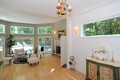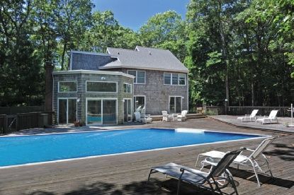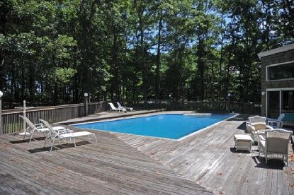 Great location! Great space! Great price! This bright and spacious contemporary is just minutes from East Hampton Village and the ocean beaches. The four bedroom, four bath home has a large living room with fireplace and windows all around plus an open kitchen and dining area. The shy one acre property faces a quiet cul-de-sac and has a heated pool in back surrounded by extensive decking.