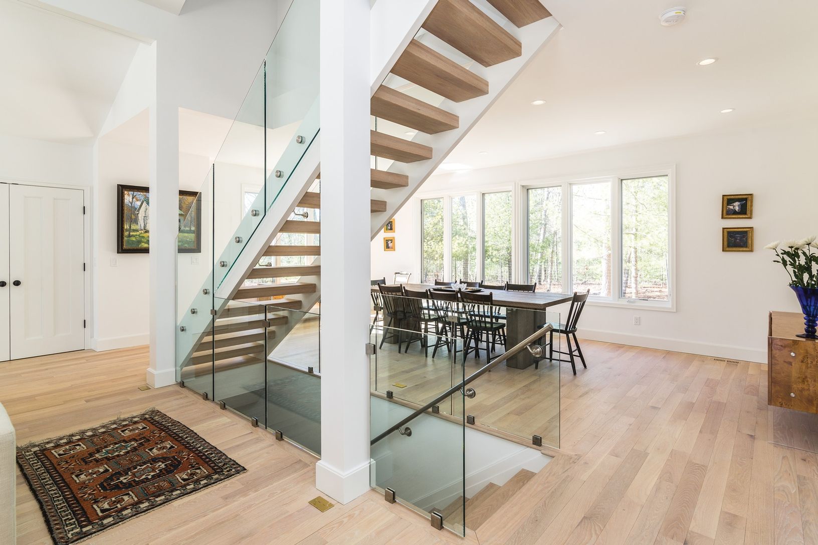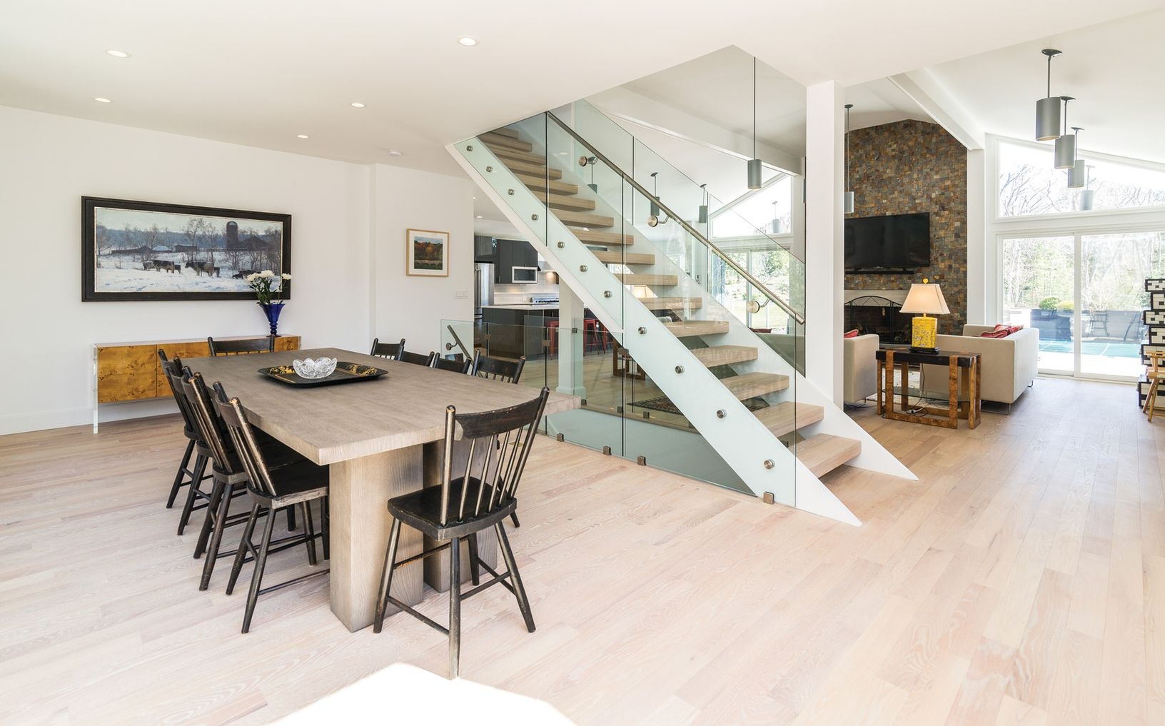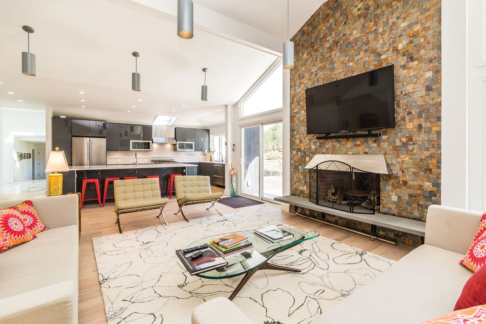 This stunning architect-designed re-construction of a mid-century modern GEM, is all new, from head to toe. The house was stripped down to the shell, lifted off the ground, and done over completely from scratch, right down to windows, doors, electricity, plumbing, foundation and Icynene foam Insulation. The expansive landscaping and abundant stone walls were created by noted landscape designer Judiann Carmack-Fayyaz. On the main floor, a we