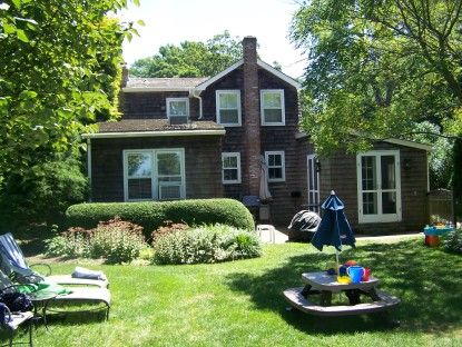 Circa 1915 charming cottage situated on .25 acre in the village of East Hampton. The main house has a spacious living room with fireplace, updated kitchen with new appliances, first floor bedroom with bath, family room, and dining room that opens to a beautiful lush lawn with specimen trees and professional landscape lighting. Second level has two ensuite bedrooms. A beautiful pool house that has been totally renovated with full bath, enter
