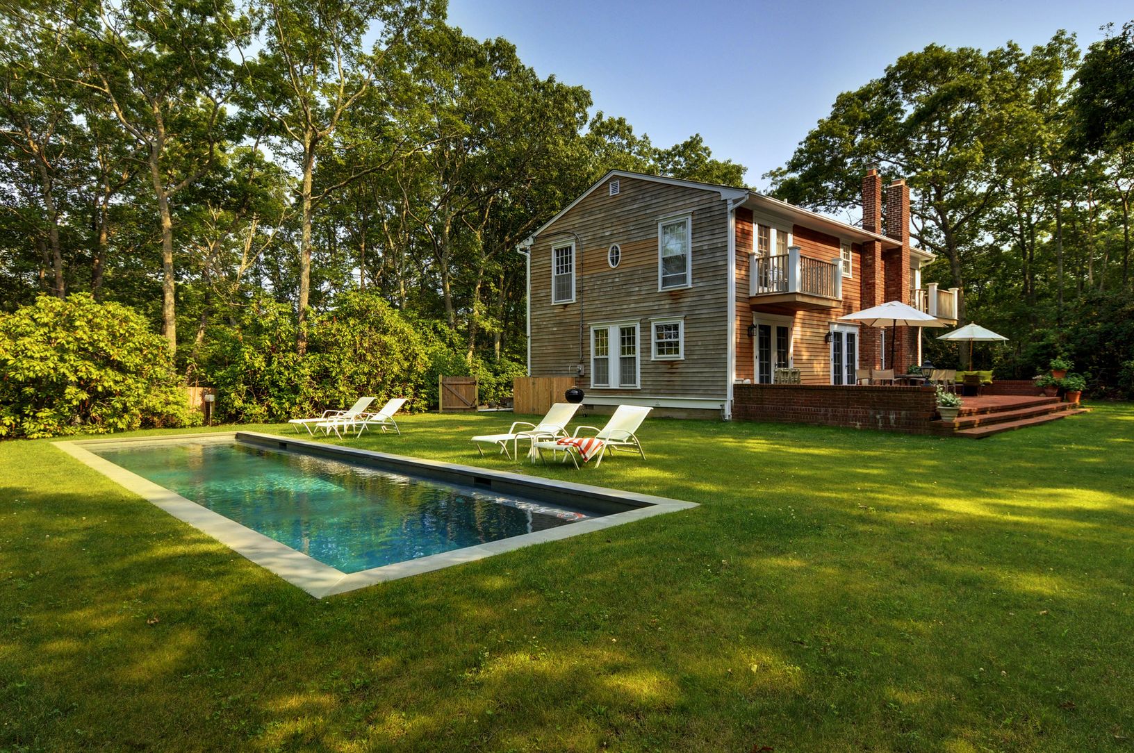 FORM Architecture + Interiors and Aran Construction worked with the owners to rework this 2100 sq. ft. traditional house into a clean-lined, light-filled private retreat. The well proportioned home has 4 bedrooms, 2.5 baths, a top-of-the line kitchen with eating area, a formal dining room and a gracious large living room. On .86 acres surrounded by beautiful rhododendrons, there's an elegant new Gunite saltwater pool in a quiet setting with