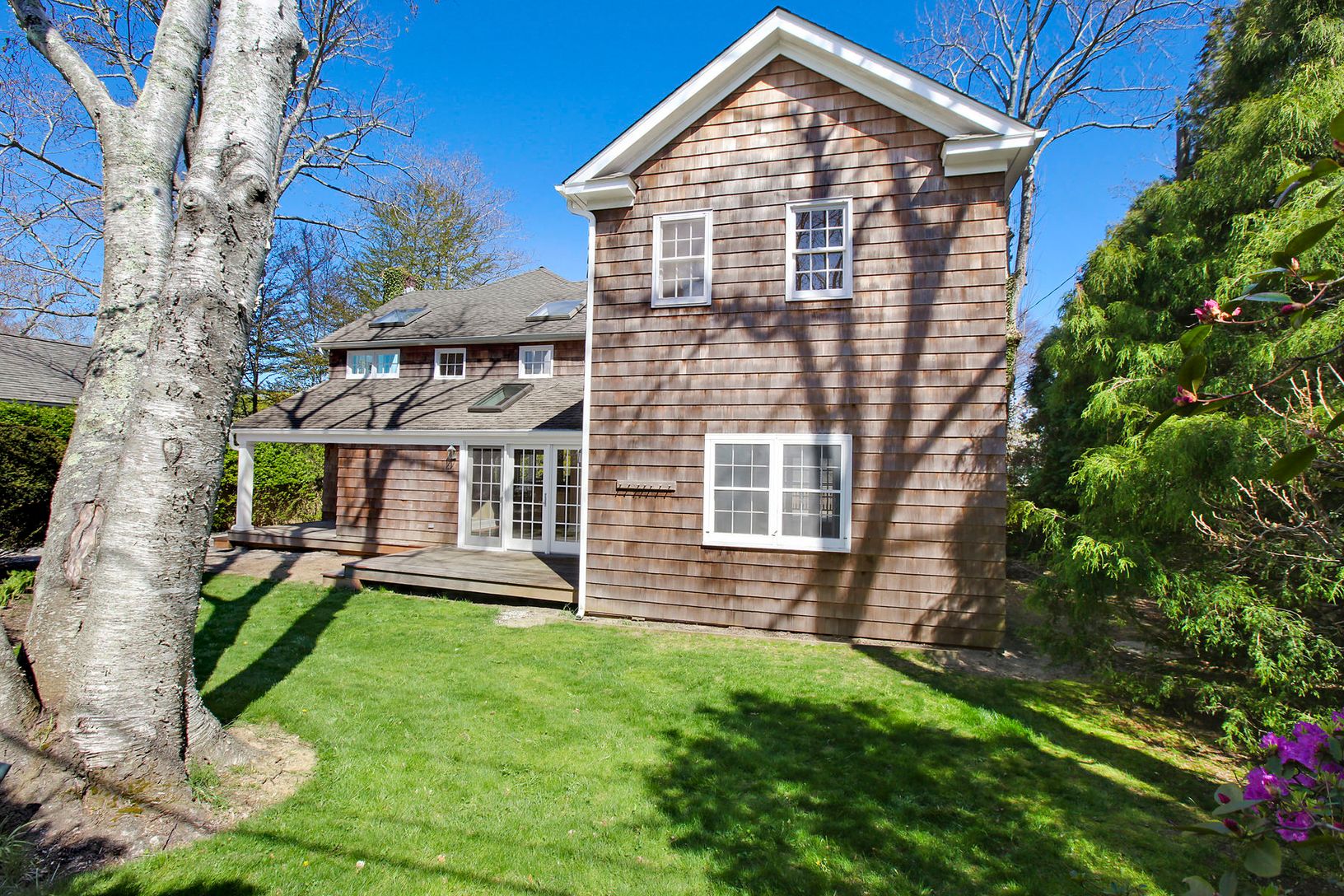 On a coveted village street is this two-story shingled cottage featuring an expansive country kitchen with light filled dining area, sitting area with fireplace, radiant heat tiled floors and French doors opening onto the deck overlooking the sunny garden. There is a separate den and office, which could also be used as a third bedroom. Second level offers the master suite, guest bedroom, laundry and loft area. On approximately one-third acre w