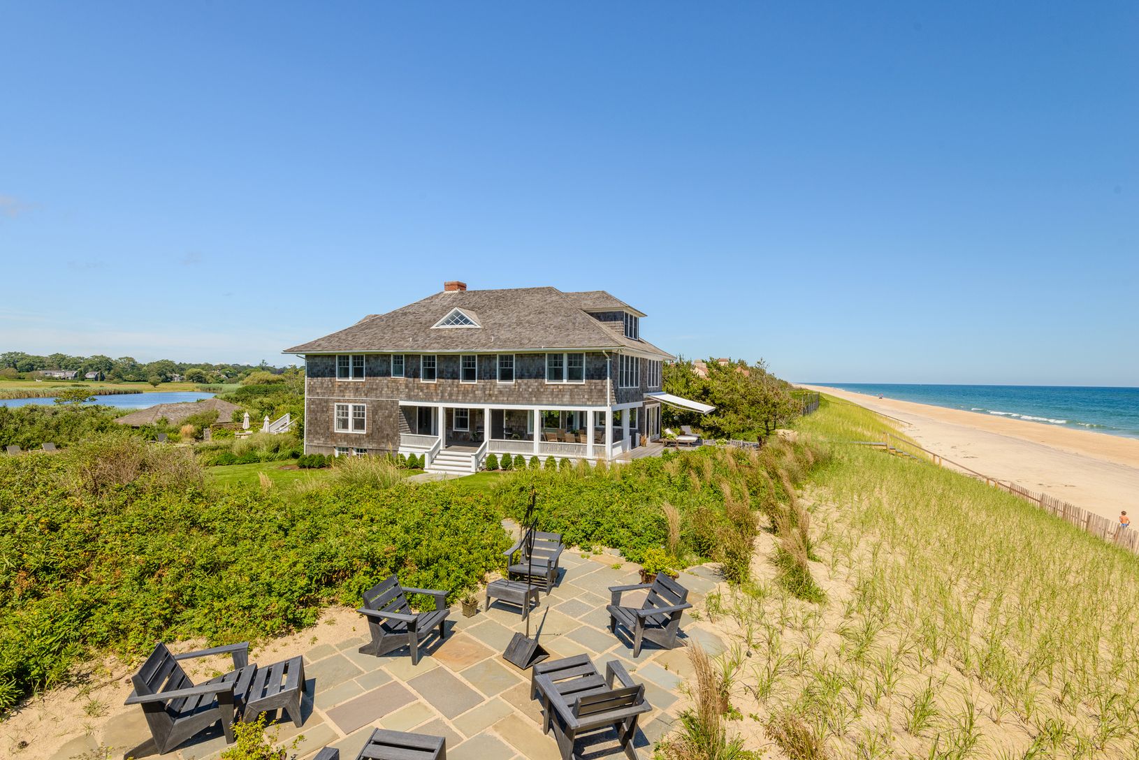Spectacular oceanfront in East Hampton's finest location: This original, early 1900s shingle-style "beach cottage" on 1.25 acres offers 200 feet of direct access to the sea, with all-day, picture-perfect water views from every one of its rooms. The property is reinforced with a massive stone revetment beneath the dunes along its oceanfront that together with its high capacity generator and security system, provide top levels of protection. T
