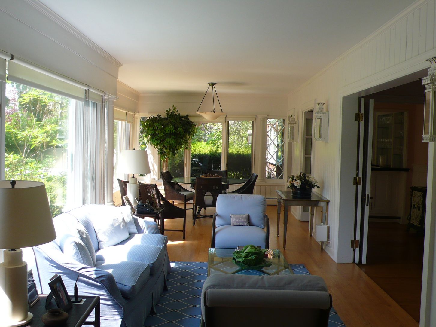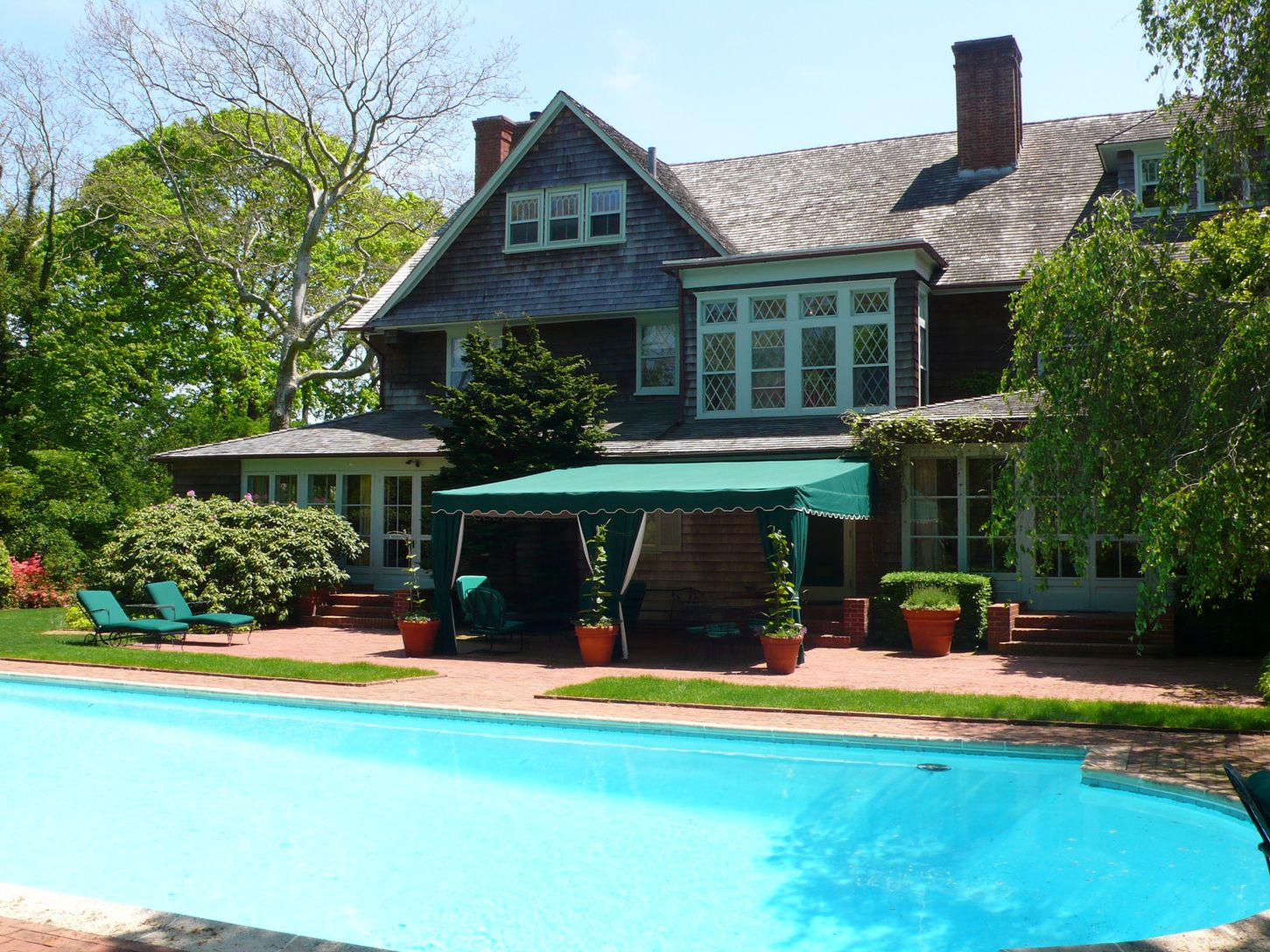 Updated classic estate in prestigious location one block to ocean. Large light-filled rooms, library, enclosed sun porch, 7 marble fireplaces, 8 bedrooms, 7.5 baths. Large shaded terrace overlooking manicured 1.90 acre grounds with heated pool and magnificent old trees.