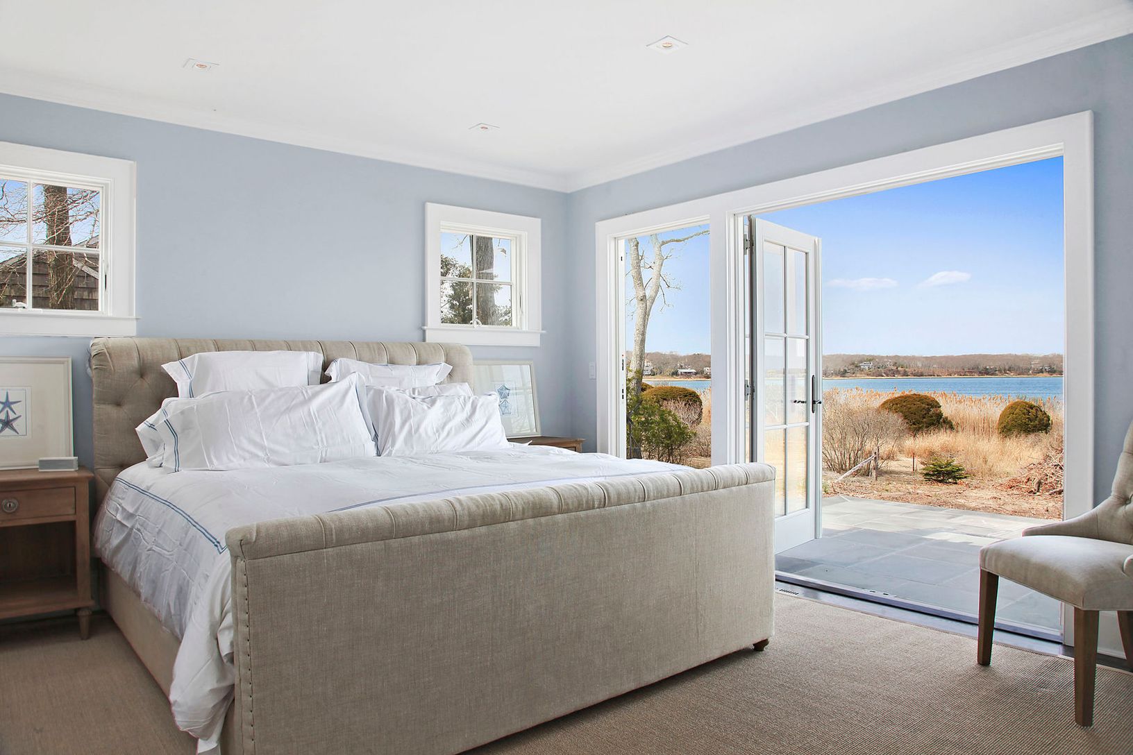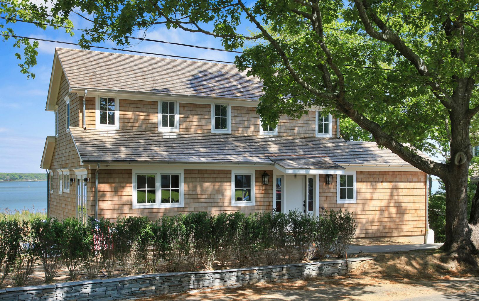 Total reconstruction completed to highest standards in 2014. Luxurious, sophisticated house with expansive views of the harbor. Great room, 5 bedrooms, 4.5 baths, family room, office, expansive decks. High-end appliances and finishes. Pristine terrace leads to private beach with direct access to Three Mile Harbor. Perfect home for guest and entertaining. Move-in ready.