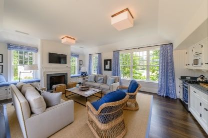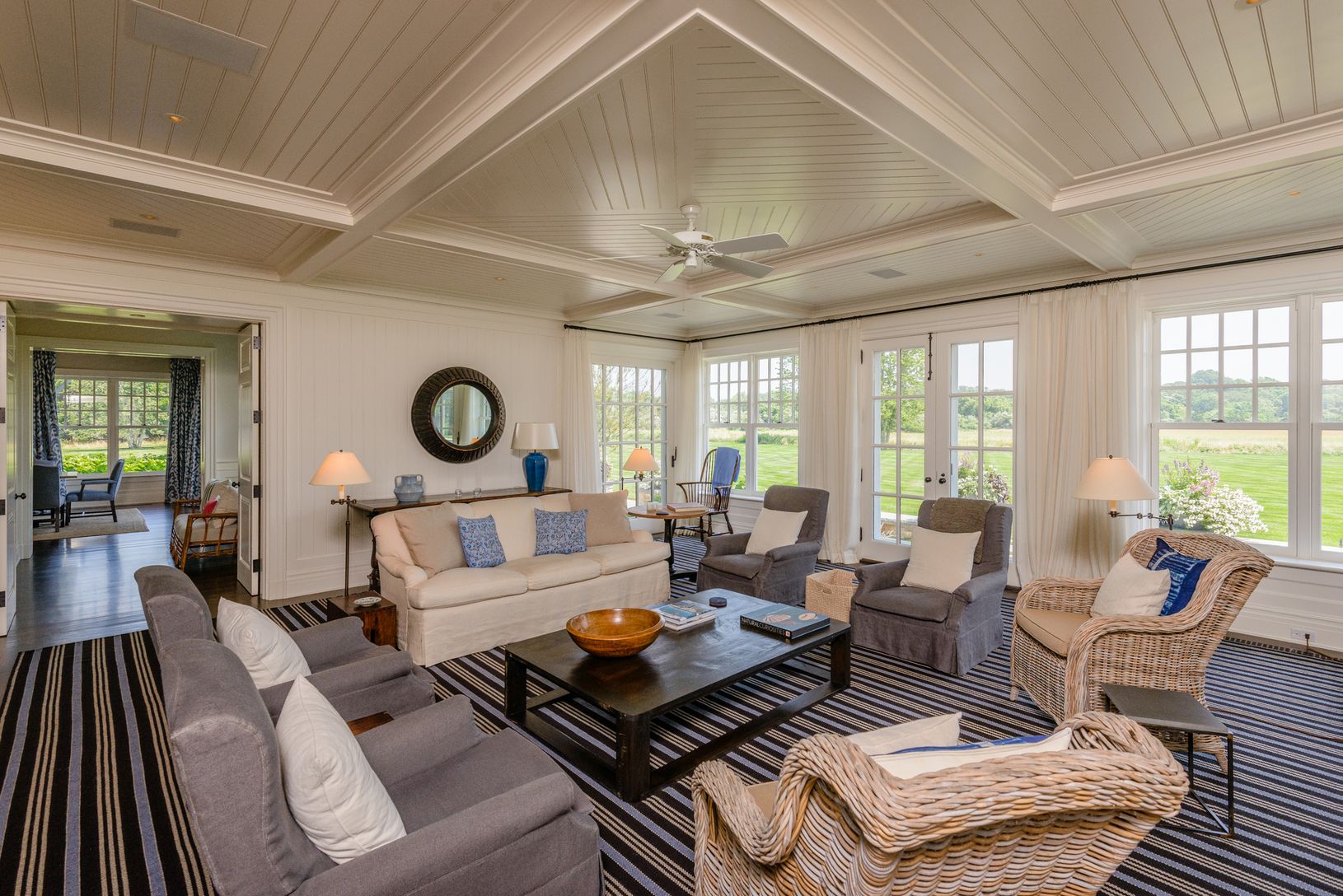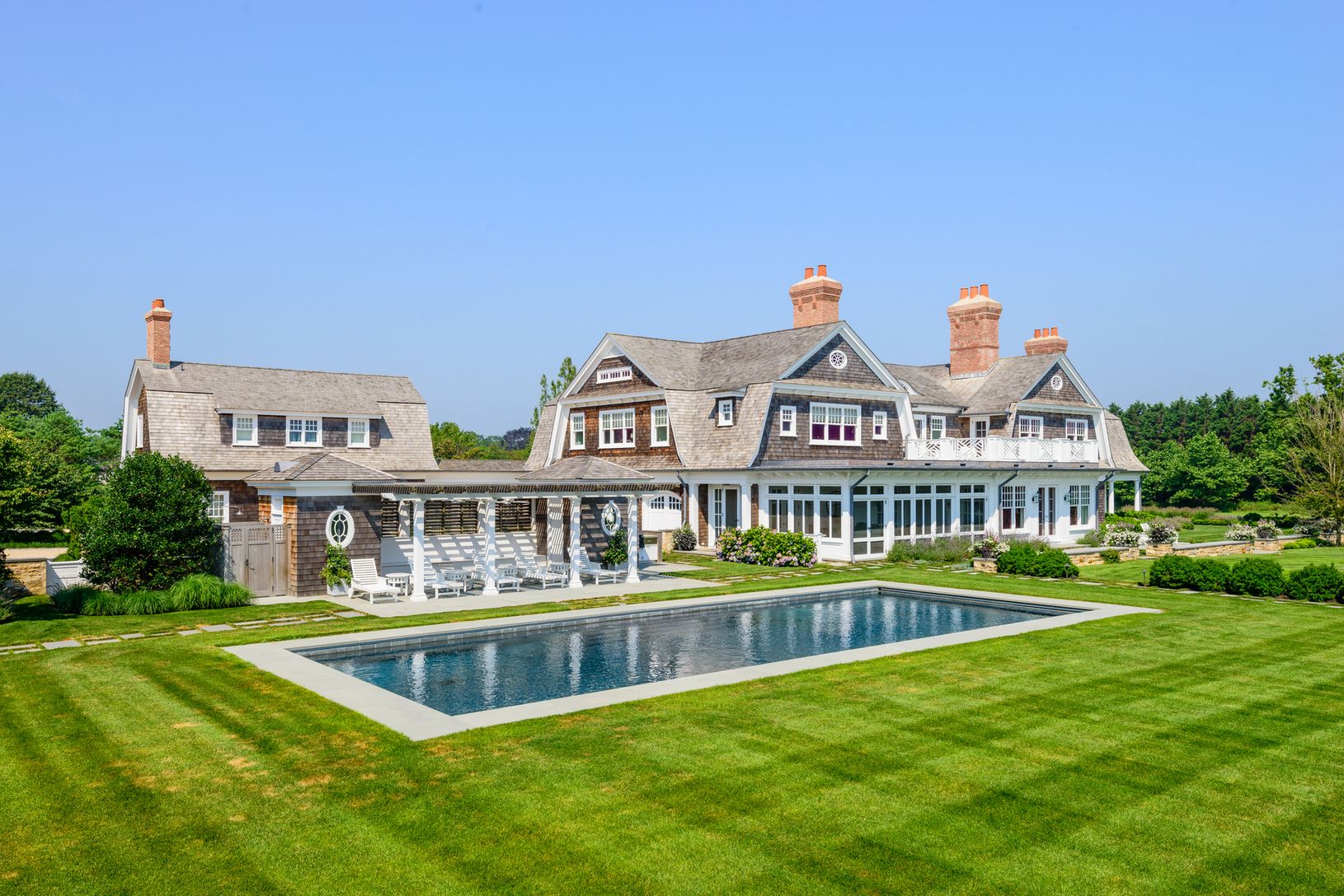 In the prestigious Further Lane Farm compound, premium construction 17,000 sq. ft. estate built in 2010 on gated 5.8 acres (includes 2.2 acre building lot plus exclusive use of 3.6 acre open-space reserve) with sweeping views over 41 acre of protected farm reserve minutes to ocean. Custom designed by architect John Murray with interiors by noted decorator Victoria Hagan. Large light-filled open rooms featuring big family room/kitchen, master s