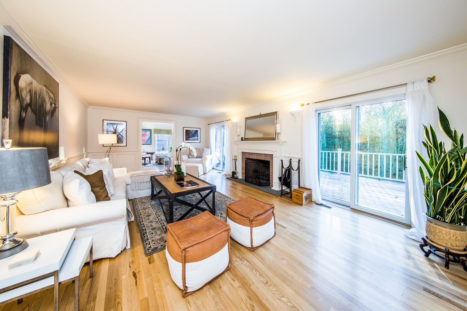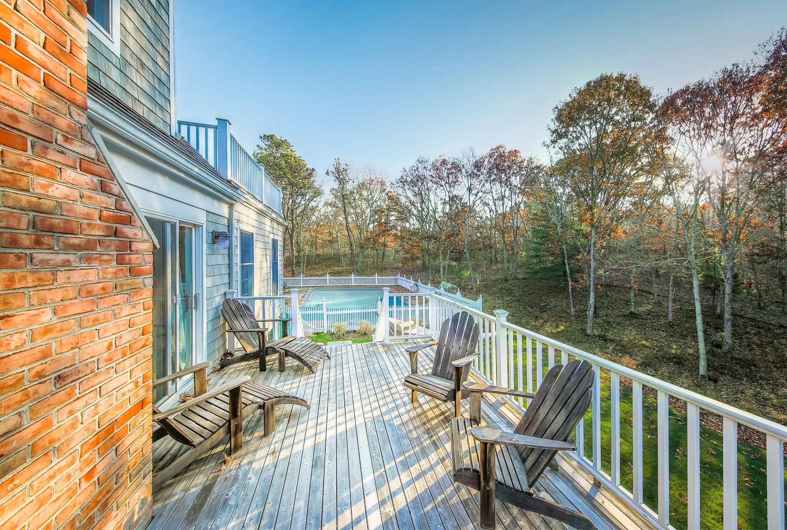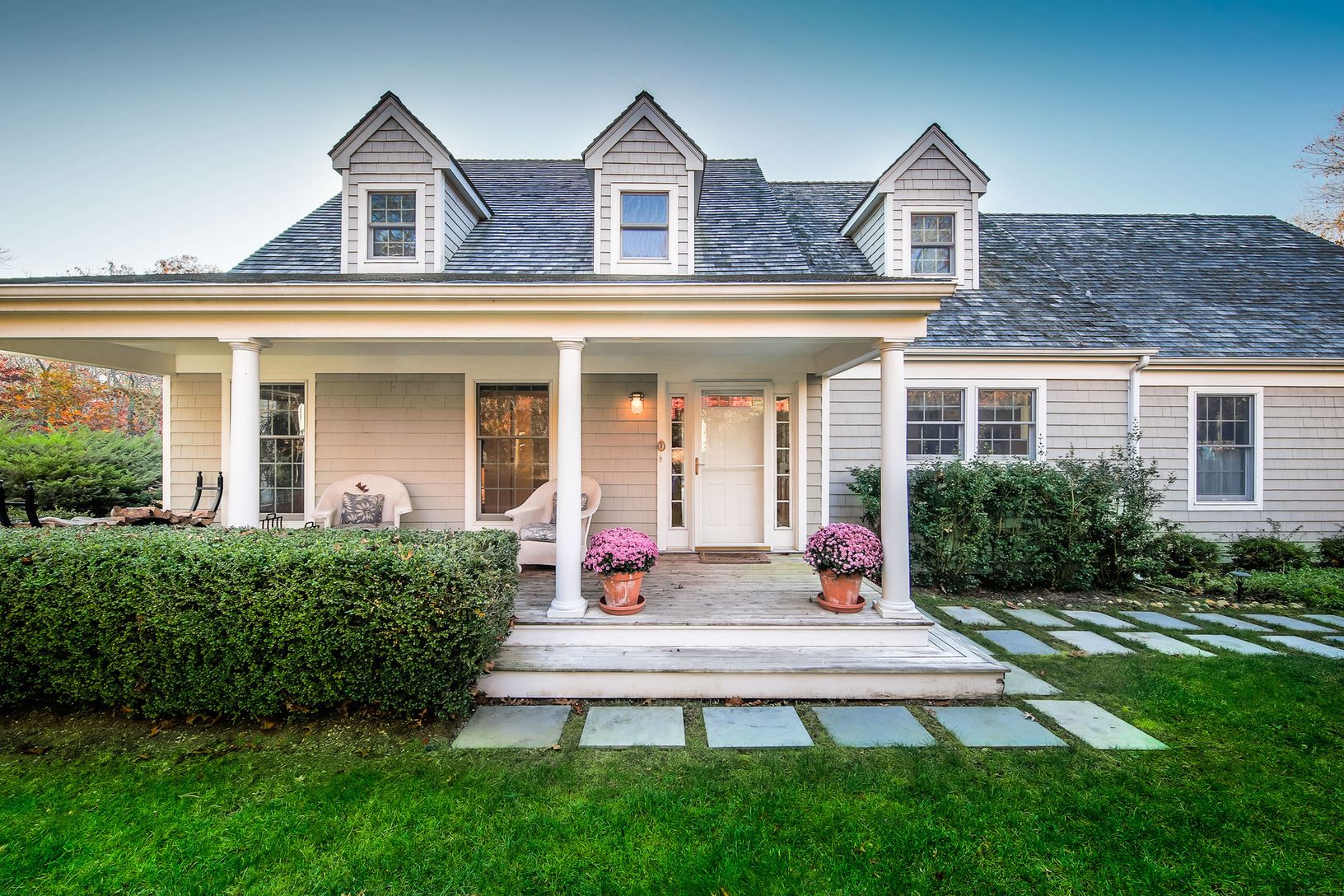 Close to town on a quiet cul-de-sac, this lovely expanded cape is sited on over 1 acre of green space bordering a reserve. The charming exterior features a covered pillared front porch, multiple dormer windows, a bluestone walkway and cedar shingle-clad roof. Inside, the spacious 3,086 sq. ft. interior features a double-height entry, pristine hardwood floors, extensive millwork, a large living room with fireplace and a sun-splashed den with