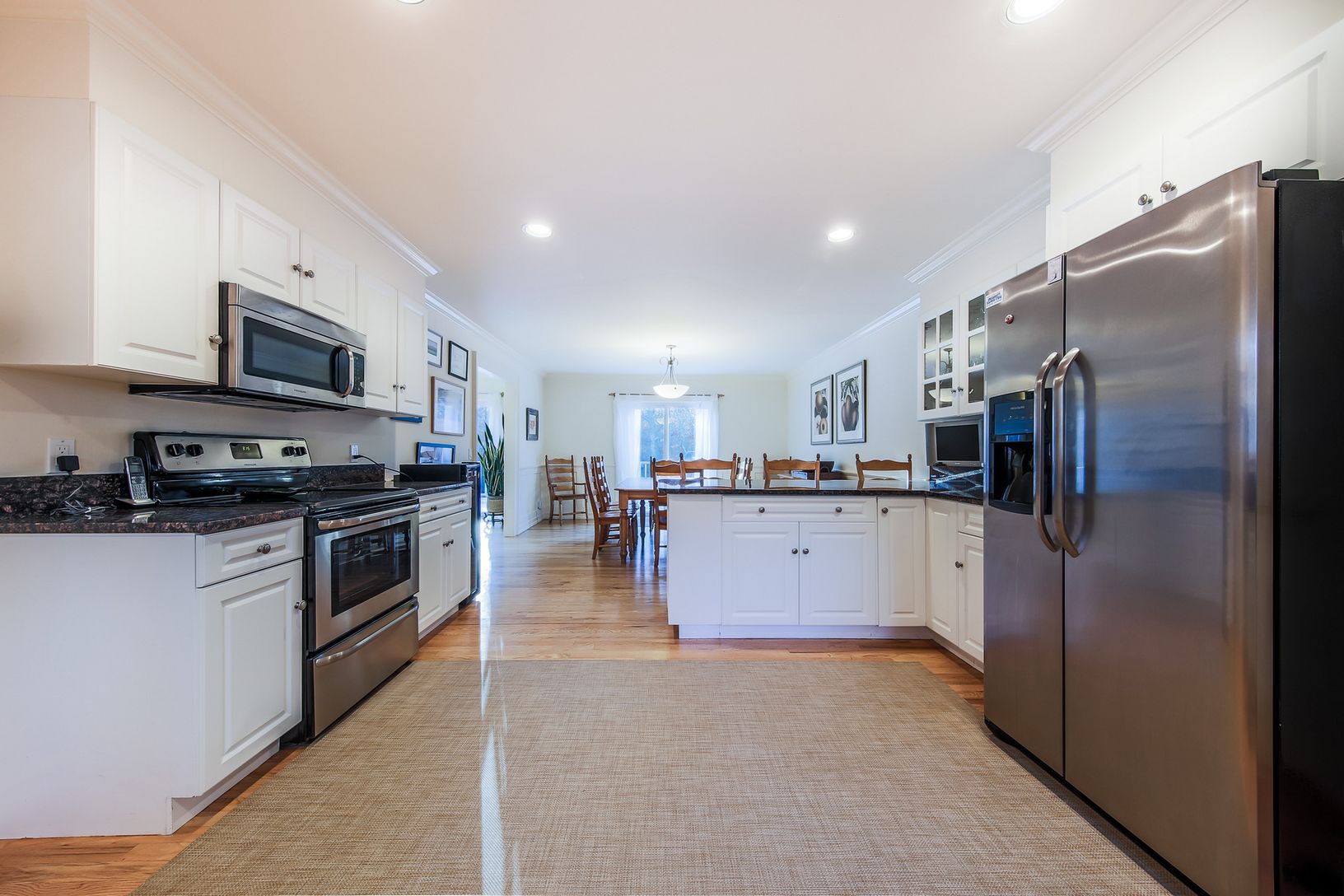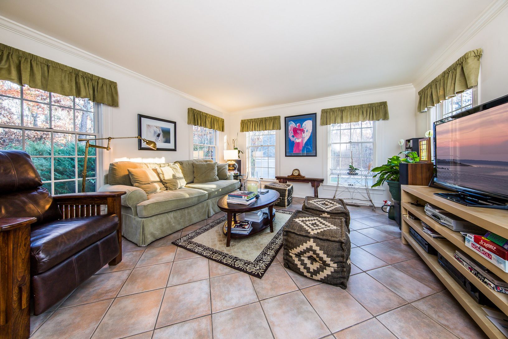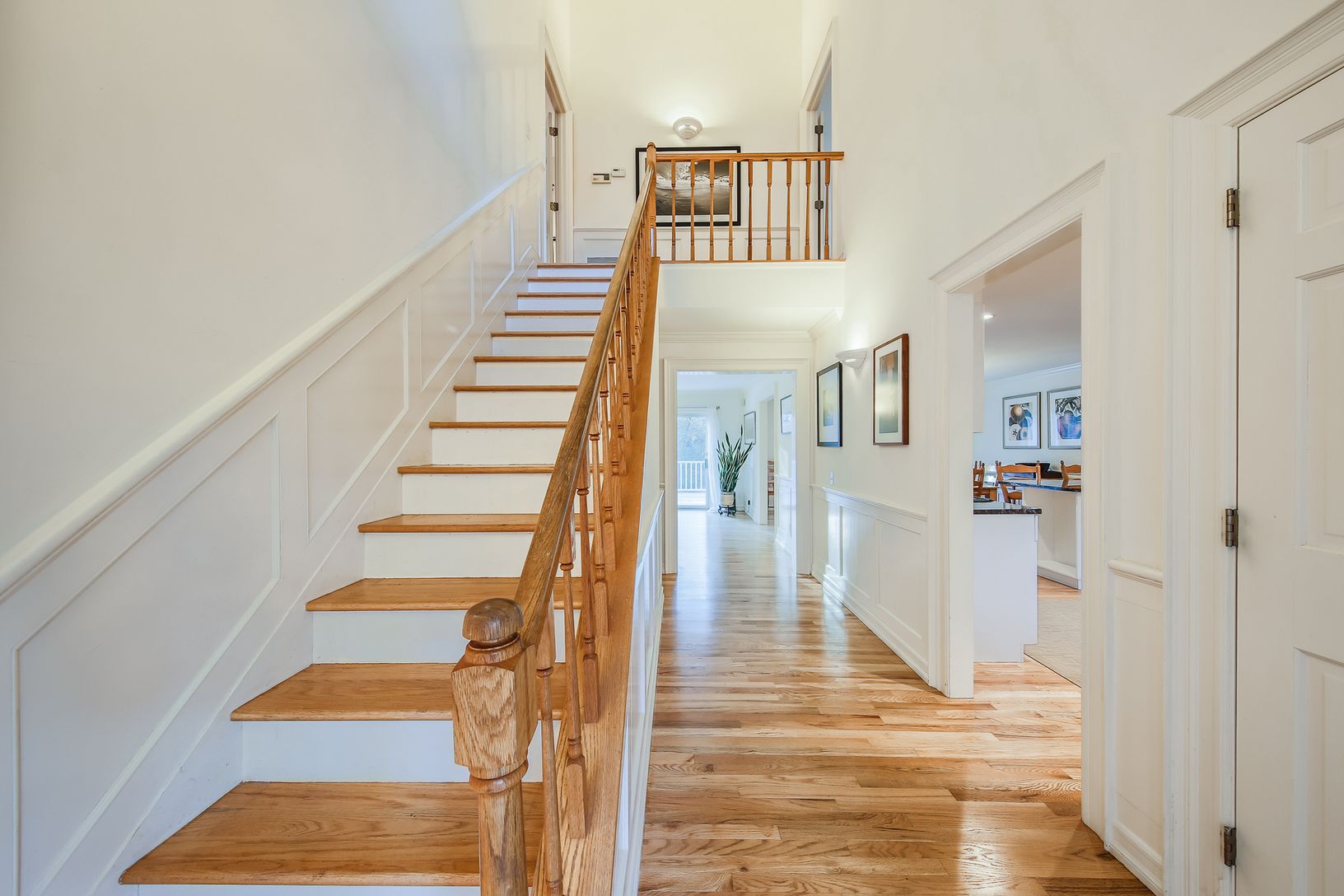 Close to town on a quiet cul-de-sac, this lovely expanded cape is sited on over 1 acre of green space bordering a reserve. The charming exterior features a covered pillared front porch, multiple dormer windows, a bluestone walkway and cedar shingle-clad roof. Inside, the spacious 3,086 sq. ft. interior features a double-height entry, pristine hardwood floors, extensive millwork, a large living room with fireplace and a sun-splashed den with