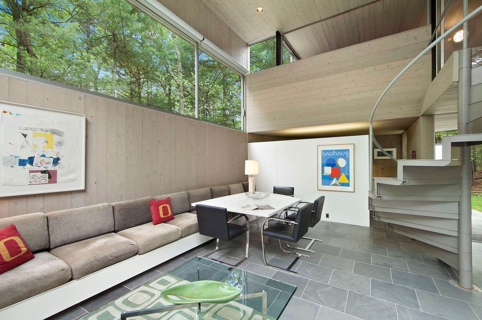 The first commissioned work by "star architect" Charles Gwathmey after his seminal Gwathmey Residence and Studio, the widely published Sedacca House is a two bedroom modernist "living sculpture." Set on the highest point of a private 2.82 acre parcel in East Hampton, expanses of glass, slate flooring and terrace create a create a dramatic living space in harmony with its natural surroundings. Fully original and modernized in consultation with