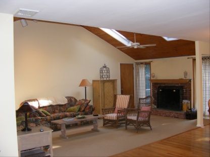 This 3 bedroom, 1 1/2 bath home has lots of room to grow. This house has lots of room for expansion both inside and out. There is also ample room for a pool. As an added bonus, there is a large garage, a sunlit, double-height celing living room, central air conditioning all on a just shy half acre in the lovely Clearwater beach section of East Hampton.