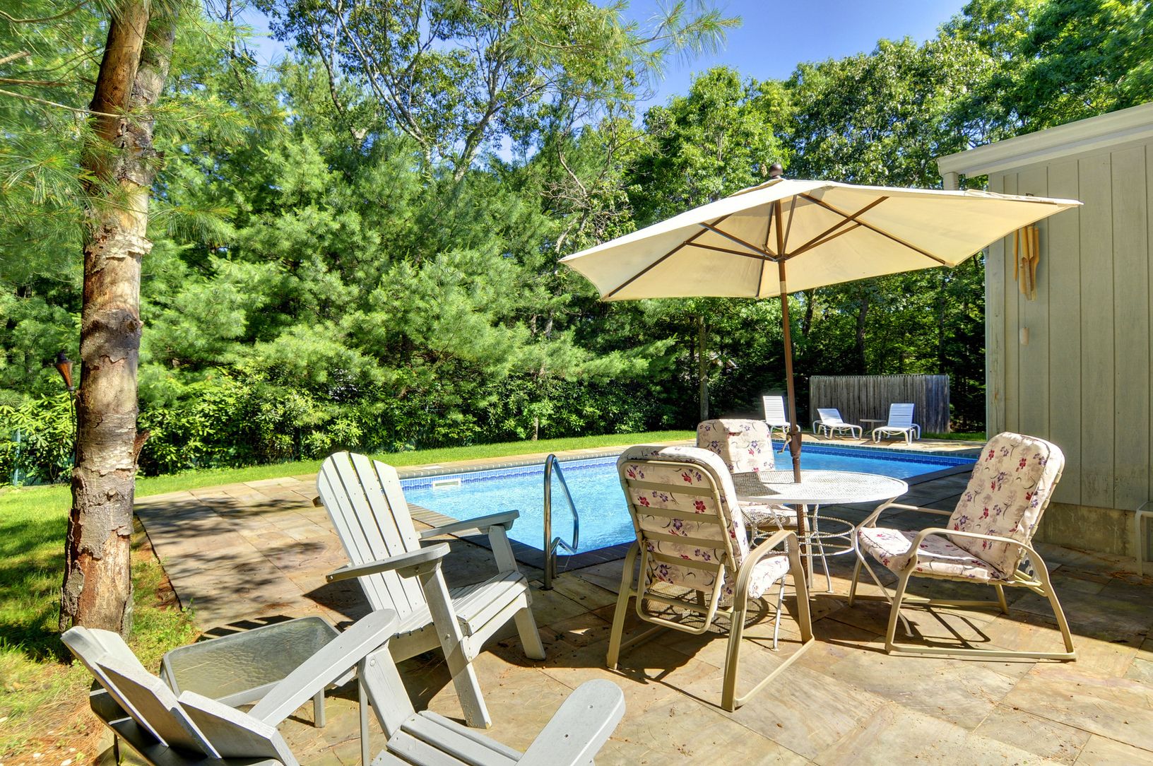 Set on a quiet street close to the bay beaches, is this open plan contemporary home. The home features a large living room with vaulted ceilings, a kitchen that steps out to the pool and patio, and three nice size bedrooms. The sandstone patio that surrounds the pool is a lovely area to entertain.