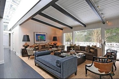 Stunning modern home, designer decorated with every amenity. Four bedrooms, four and one half baths, a huge kitchen/great room with stone fireplace, full size gunite pool with waterfall, expansive decking, and lots of luxurious landscaping surrounding the 2+ acre property close to the village. This is an exceptional home.