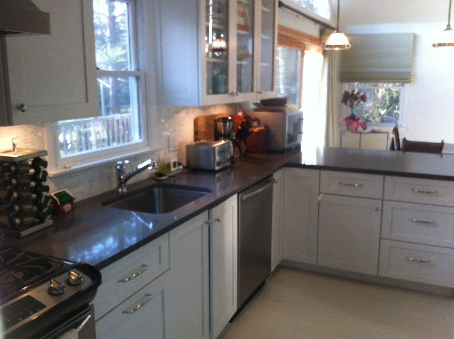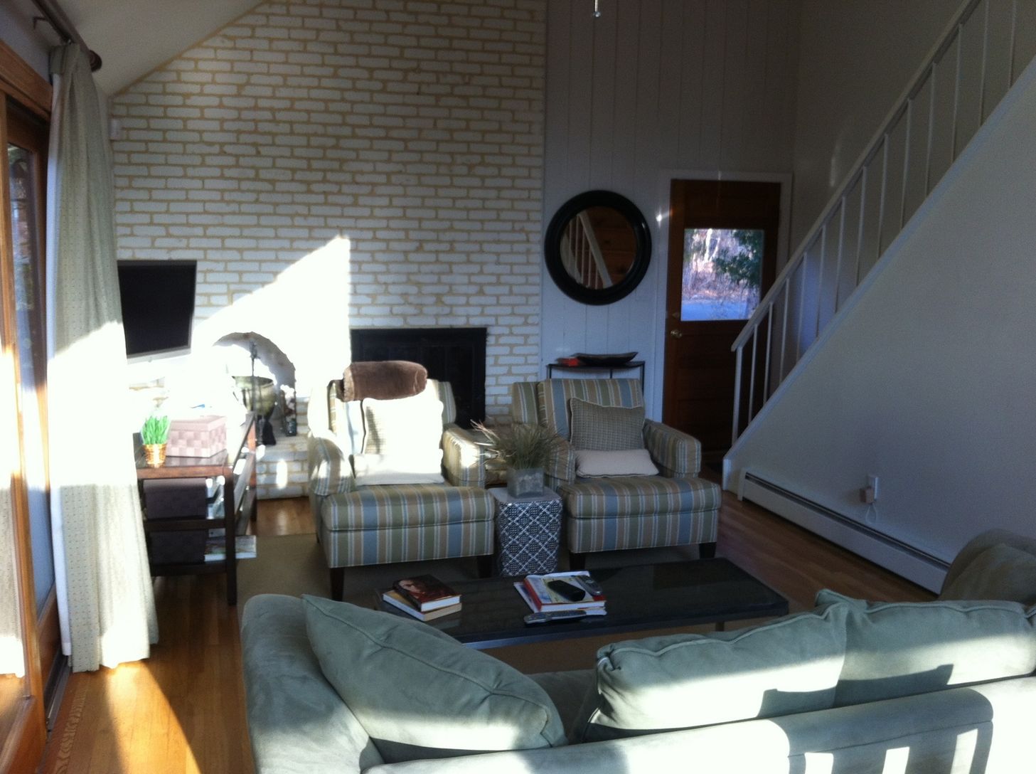 Shingled saltbox features a newly renovated open plan kitchen by Hampton Design with all new appliances including Bosch dishwasher, GE stainless refrigerator,Frigidaire stainless stove,Grail Shaker cabinets, Caesar Stone countertops and Franke sink.There is a vaulted ceiling living room with fireplace, three bedrooms, two newly renovated bathrooms including Grabill vanities,Restoration Hardware medicine cabinets, Carrara vanity top with backsp