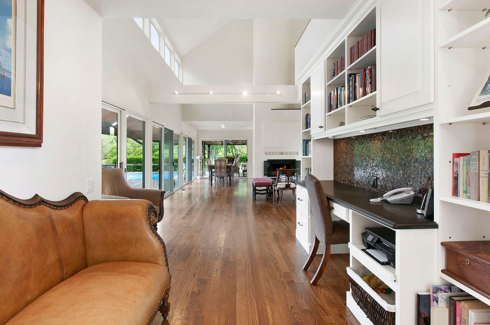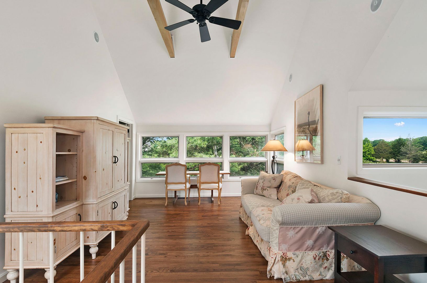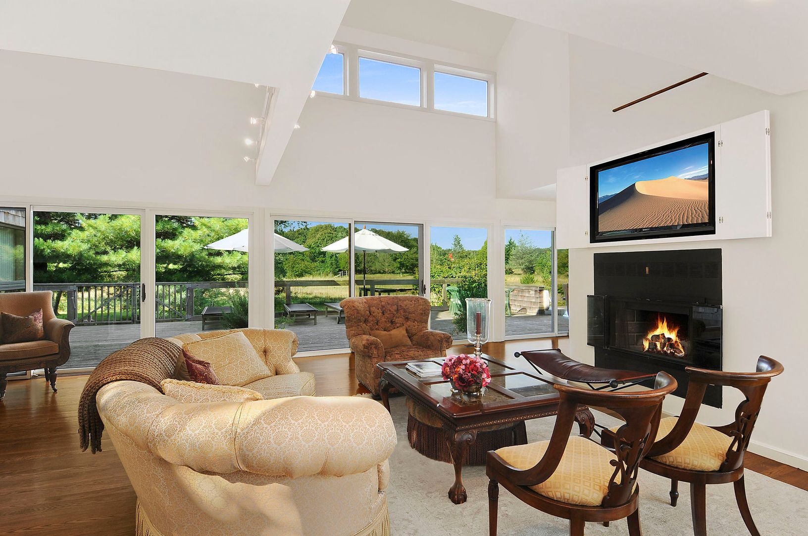 Located in prestigious and pastoral Dune Alpin South just a mile to Main Beach and a moment to East Hampton Village is this totally renovated 4 bedroom / 3 full plus 2 half baths, open, airy and gracious Contemporary Barn Style home designed by creative design architect Ernest Schieferstein. Situated on over .75 of an acre in a 132 acre community with grazing horses in beautiful meadows, a 5 mile bridle and jogging path in addition to well mai