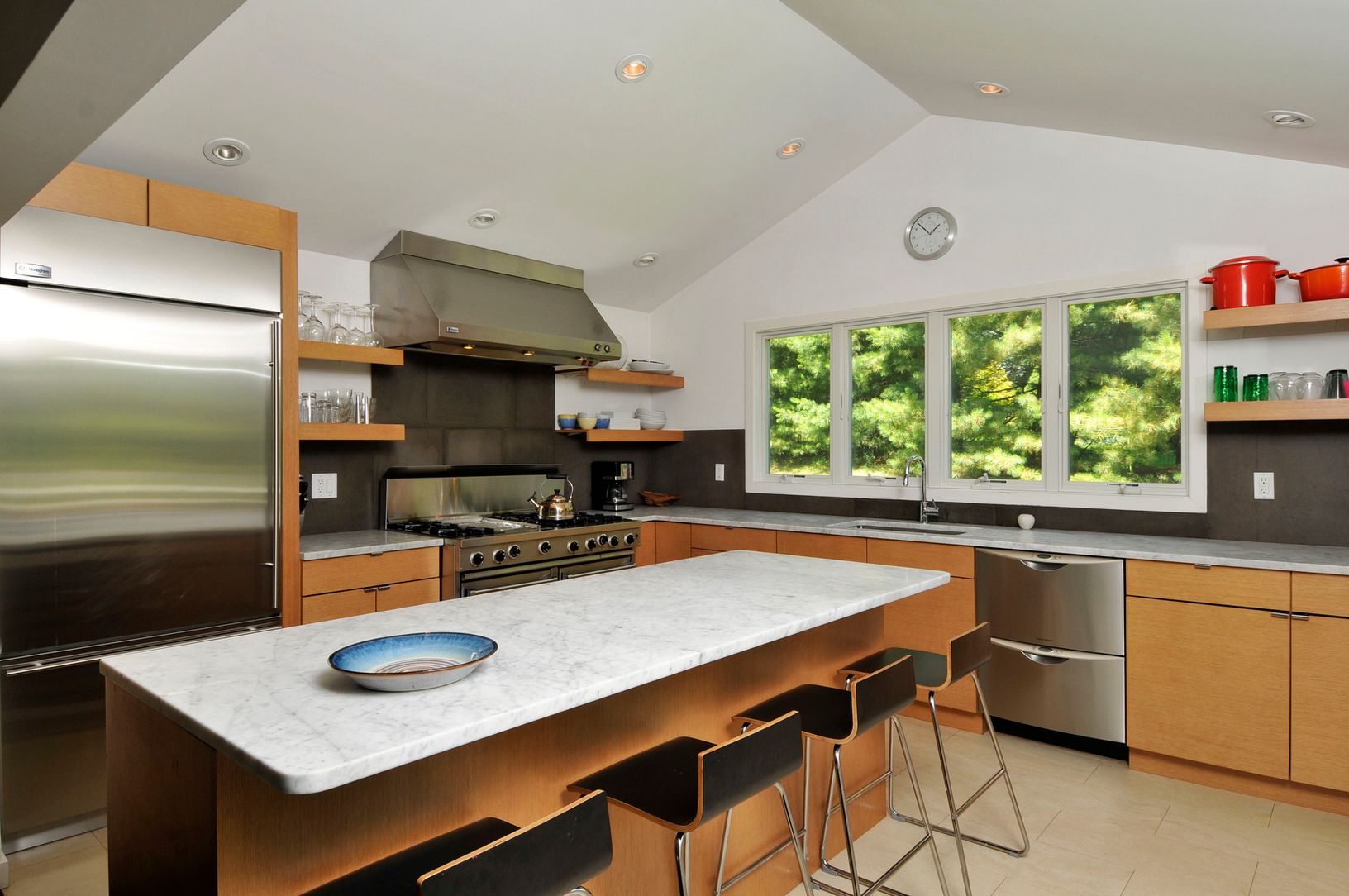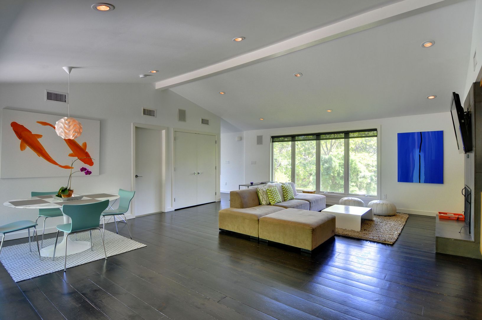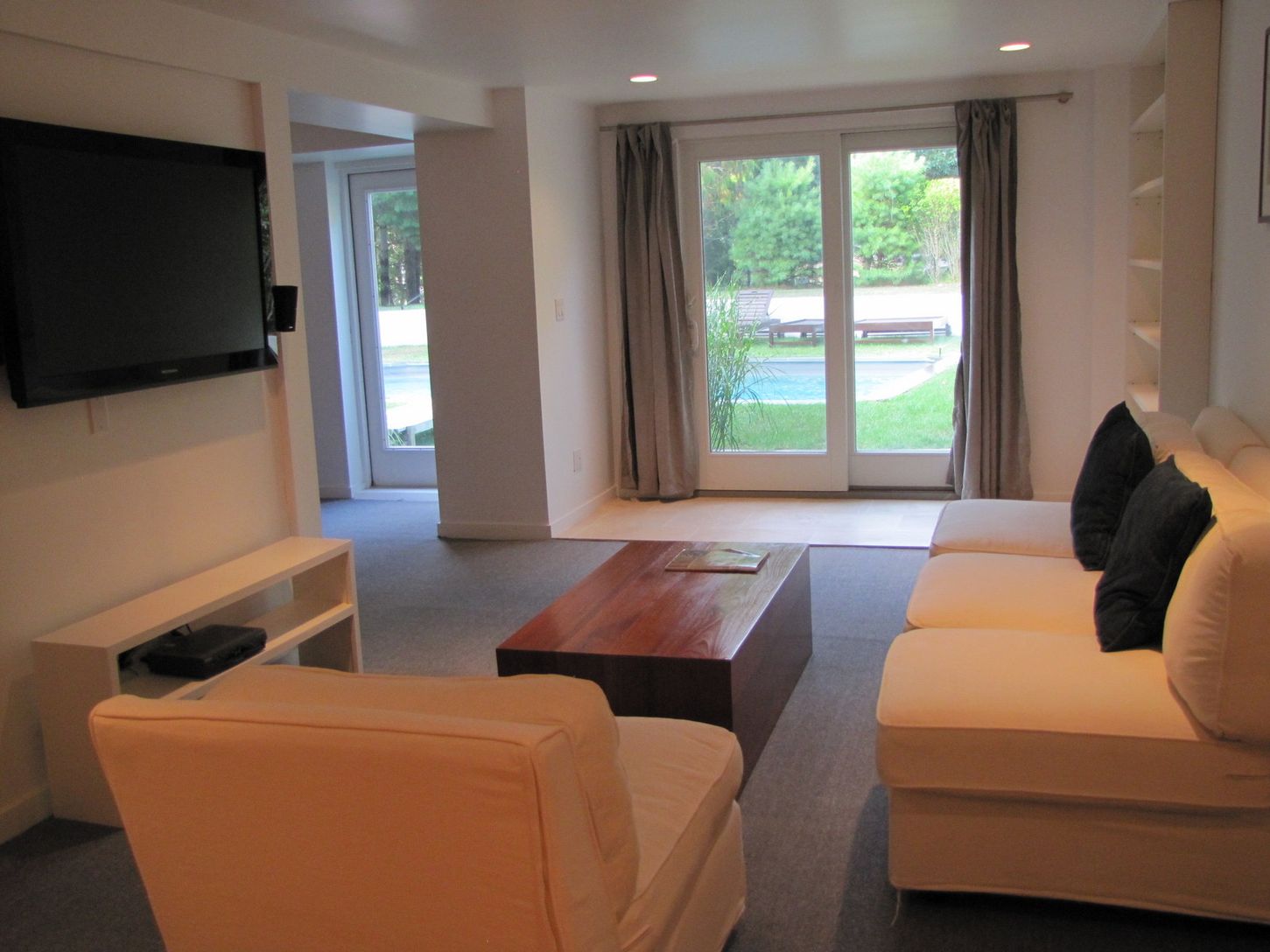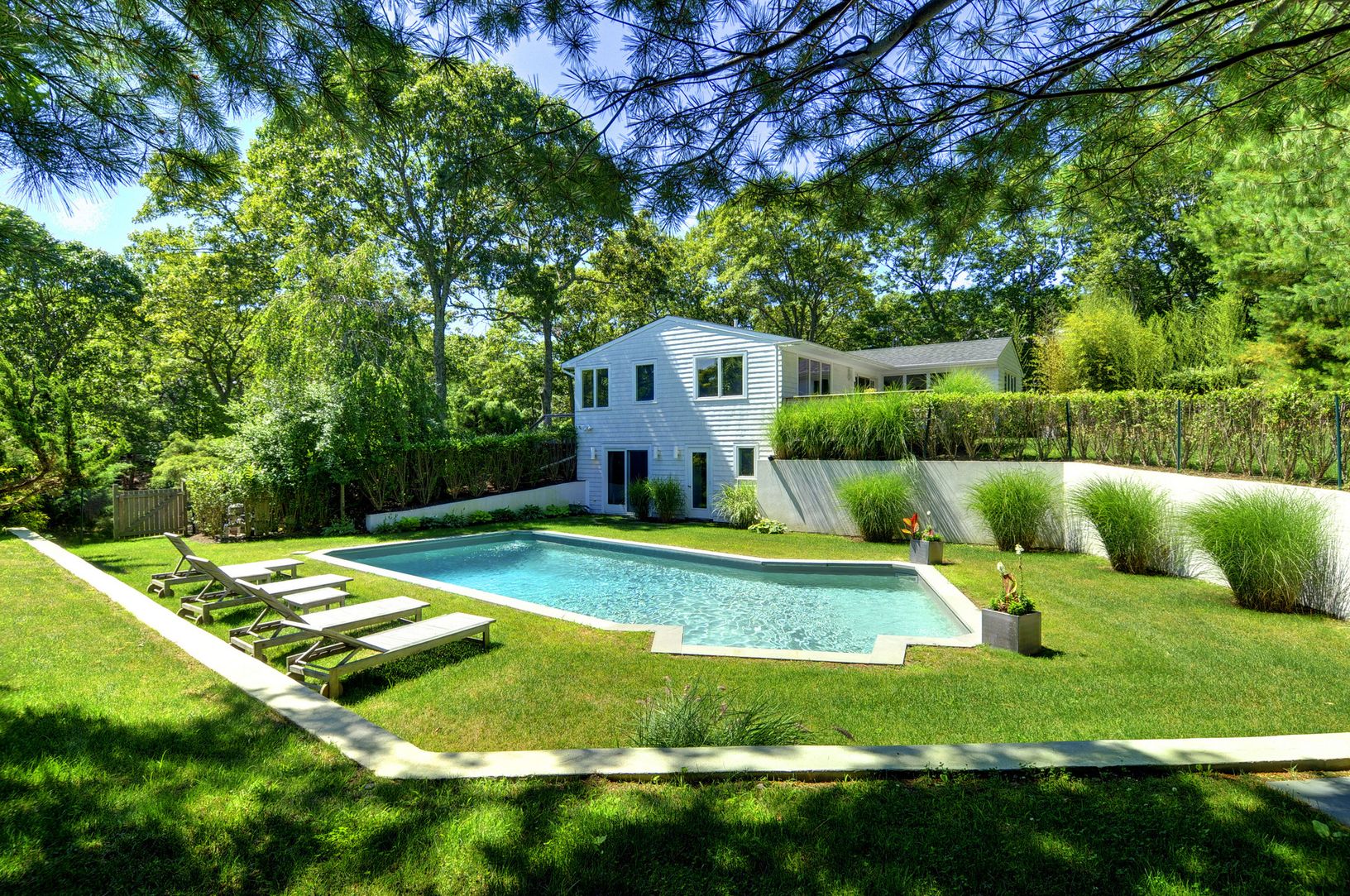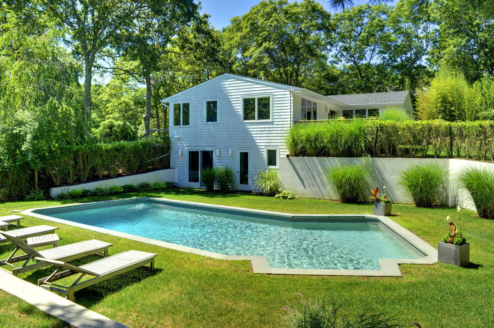 Crisp, clean, and completely renovated, this stylish home set on a quiet street near the bay in Northwest yet close to East Hampton Village, is the perfect retreat. Light and bright, offering three beds and two full baths upstairs, along with a fully finished walk out basement with bedroom, kitchen area and full bath. Light and bright kitchen with stainless steel appliances, great modern decor, laundry room, and gorgeous private pool area with
