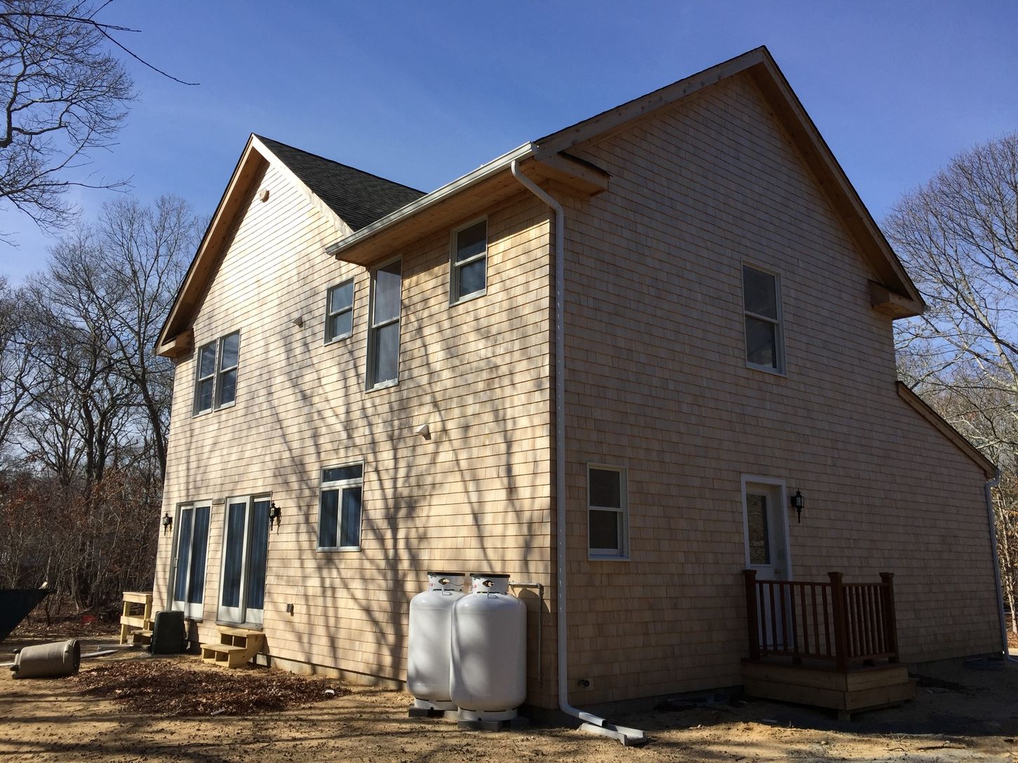 This new home has a gravel driveway and welcomes you with a Mahogany front entry foyer. It has open living space with 4 en-suite bedrooms and includes masters on both 1st and 2nd floor plus powder room. Living room w/ fireplace plus 2 zone LP Gas forced hot air and A/C ready. Kitchen has granite tops. Property sits on 0.459 acres and has room for a pool. Convenient to East Hampton village.