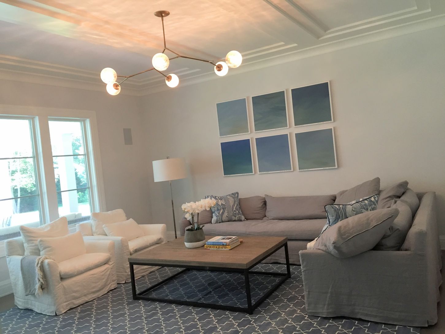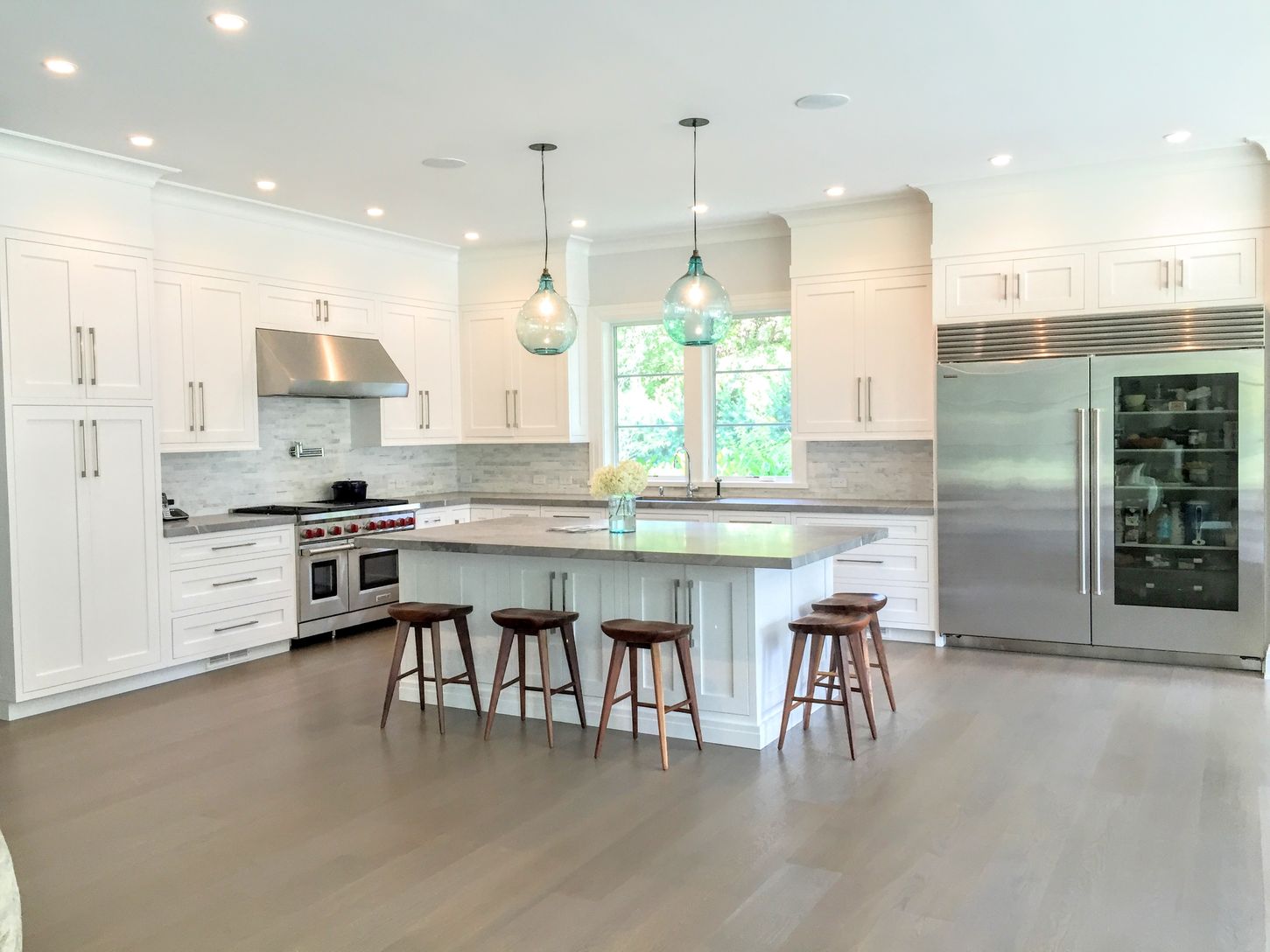 Situated in the heart of East Hampton's finest estate area with close proximity to her world class ocean beaches, this 8600 sq ft newly constructed home exudes fine craftsmanship, unparalleled attention to detail, and cutting-edge smart features. Entry opens to a double height foyer bringing you into open and sunlit living spaces, with 10 ft ceilings on all three floors and all overlooking the lushly landscaped grounds. The main level master s