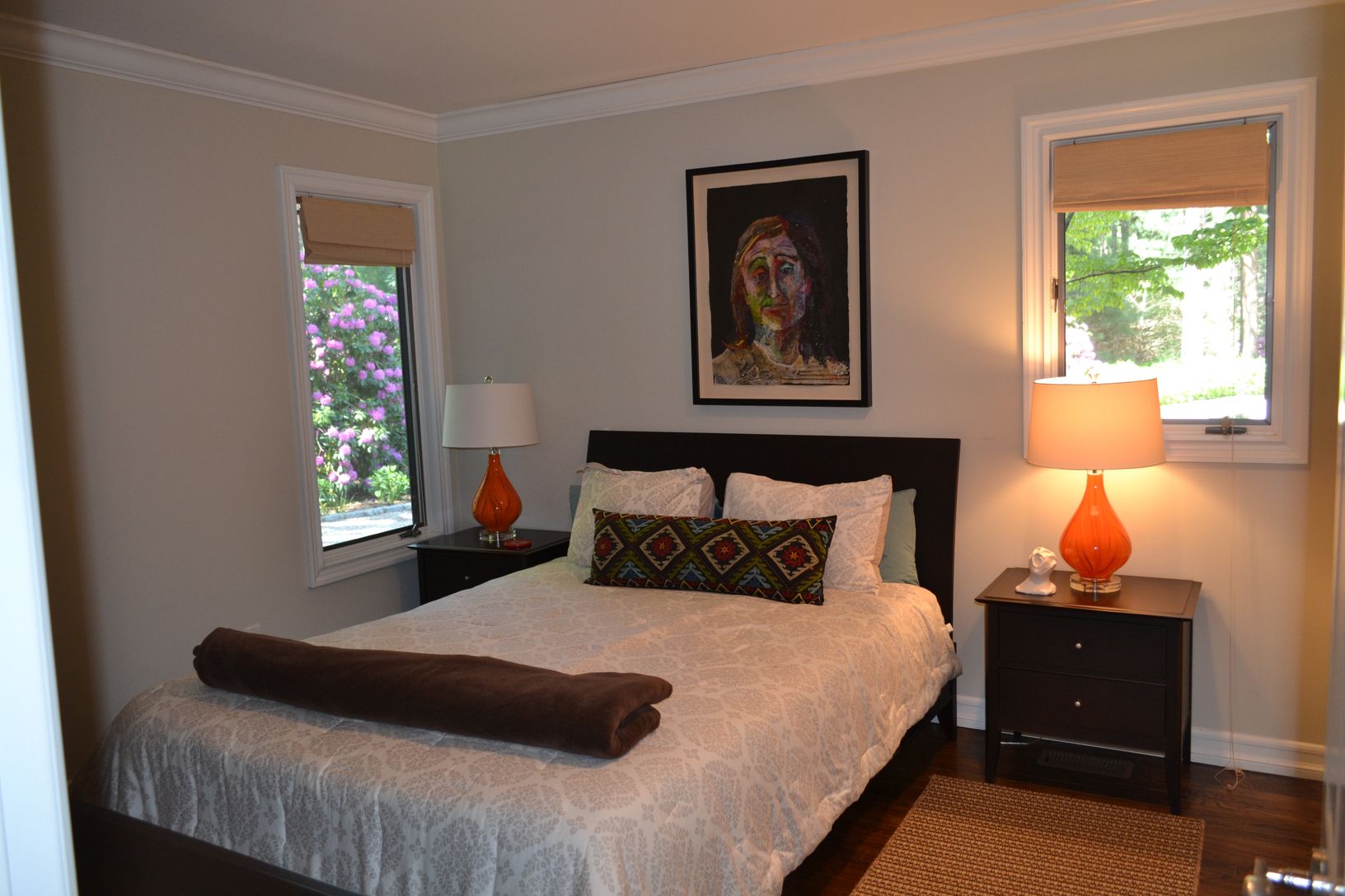 Rental Registration# 19-572. Private 2 acre retreat with beautifully landscaped grounds and gardens, a large heated pool with a waterfall. Inside you'll find an open living room with high ceilings, dining room and an open eat in chefs kitchen that all lead outside to a lovely deck perfect for outdoor dining and relaxation. There is a first floor en-suite bedroom and upstairs two additional bedrooms and bath.