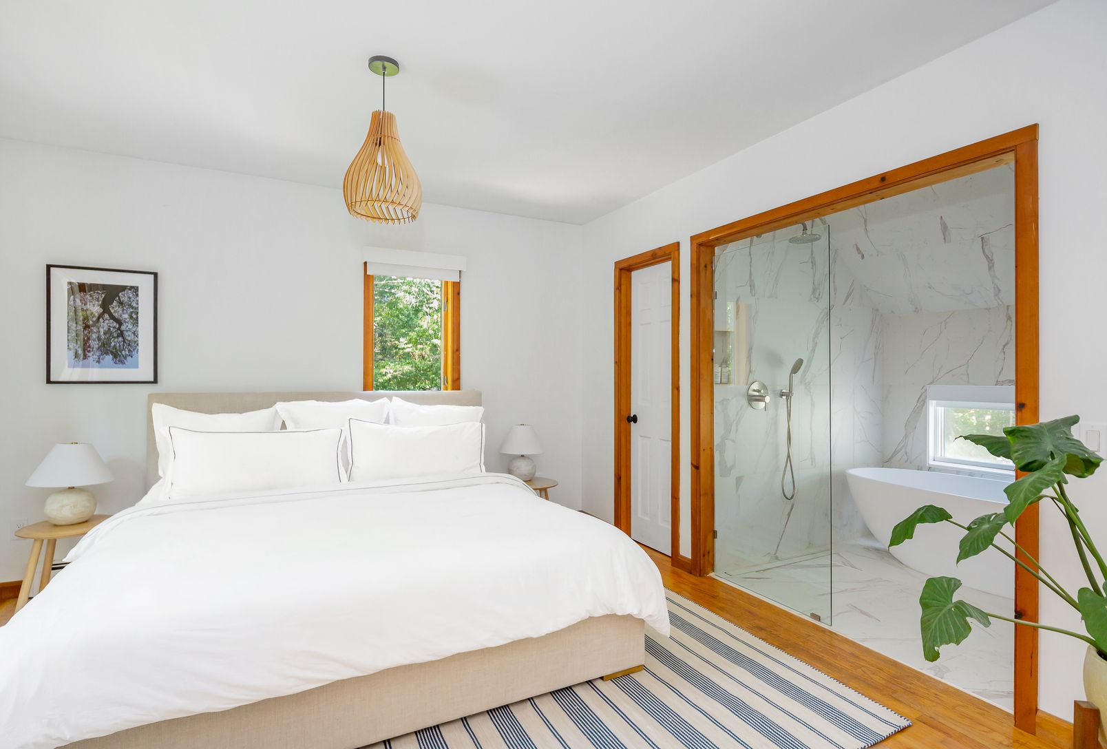 Each well-sized bedroom has its own newly renovated bathroom, and the primary