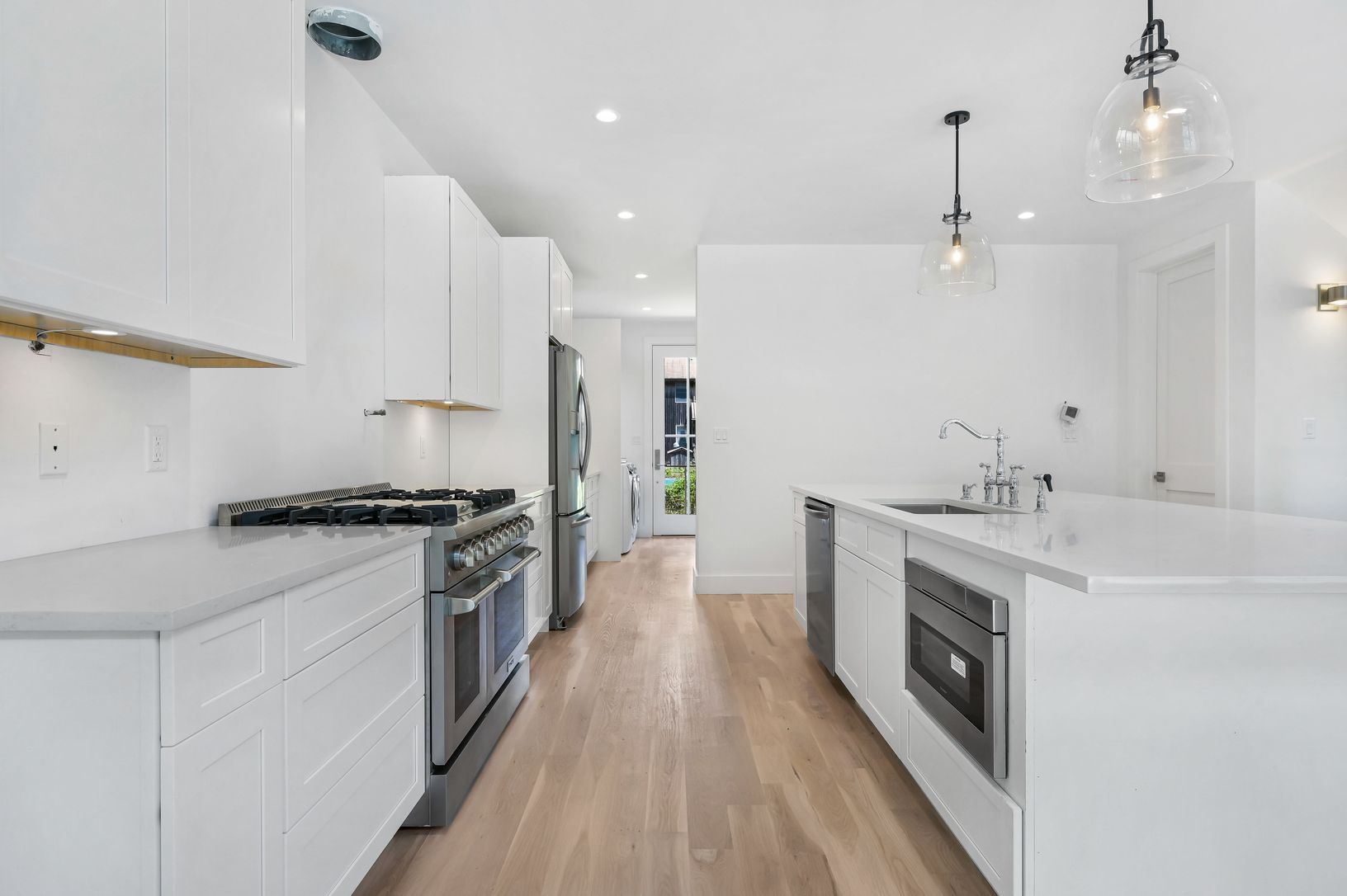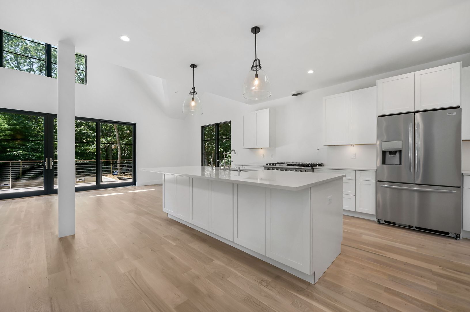 Nothing is better than a brand-new custom-built home. Here you will find a light-filled open floor plan with soaring ceilings and a wall of glass leading to a large lounging deck and pool. All the must-haves are abundantly satisfied starting in the amazing kitchen and two common living areas on 2 separate levels. Each of the four bedrooms enjoys its own bath and generous closet space. Uniquely superior architectural details, quality craftsmans
