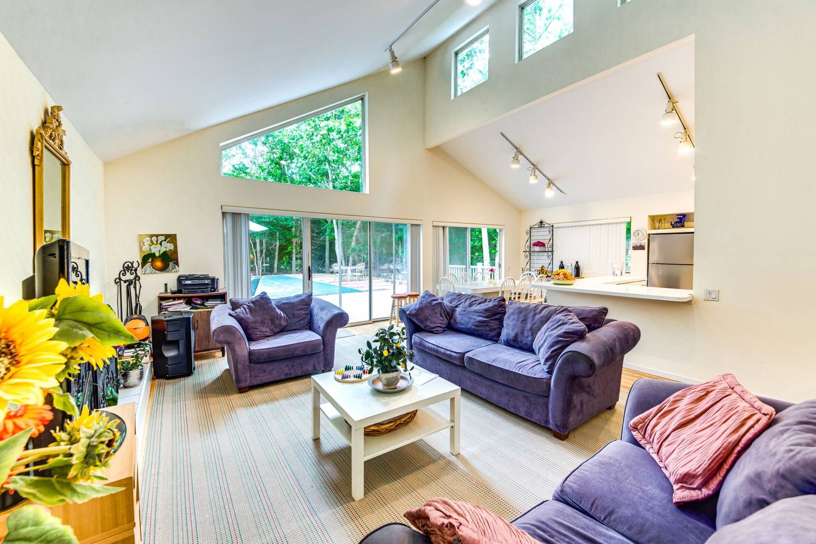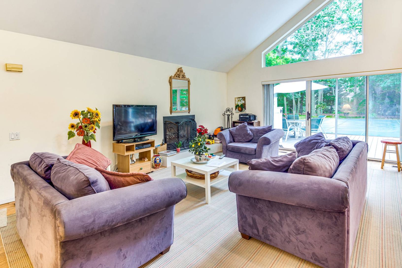 Close to the village and ocean beaches, and featuring 1,500 +/- square feet of living space on just under a half acre, this three bedroom, two bathroom contemporary offers an open floor plan including comfortable living room with a fireplace, a modern kitchen, central air conditioning, a full basement and 18 x 36 swimming pool. High ceilings with large windows allow for great light. Deck and outdoor shower recently redone. Sleeping loft in mas