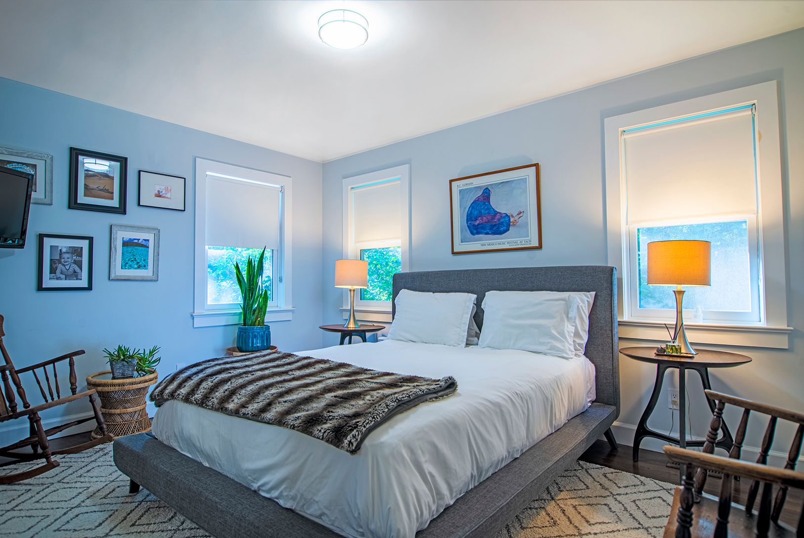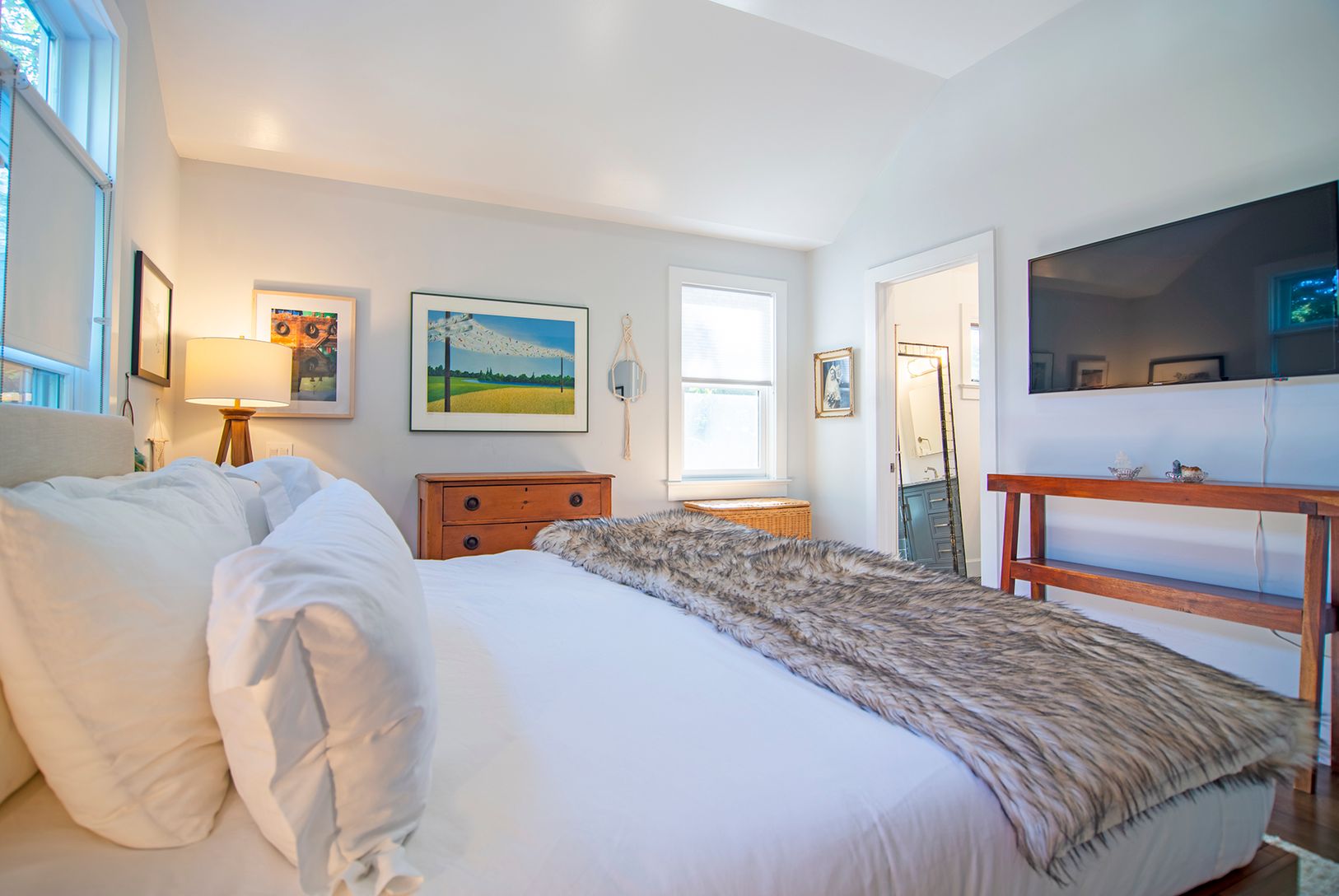 Rental Reg. #: 21-1197 Situated at the end of a private drive, this traditional shingled house offers the ultimate Hamptons getaway. Inside, find gleaming hardwood floors, updated finishes, and tasteful mid-century modern furnishings. Every room of this stunning, four-bedroom, three-bathroom home has been recently renovated with high-end finishes, including marble tile, honed granite countertops, and California Closets. The primary suite boast