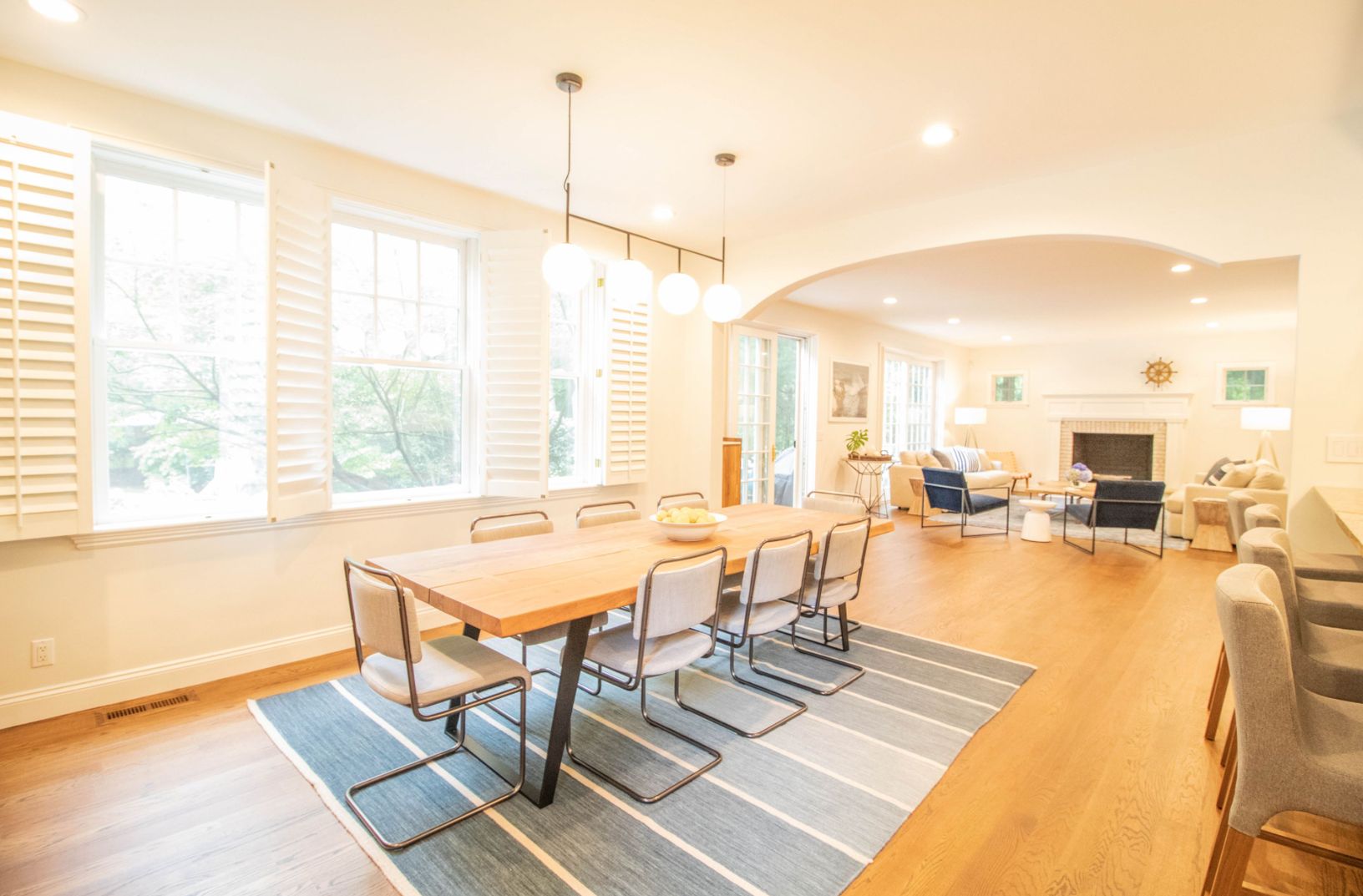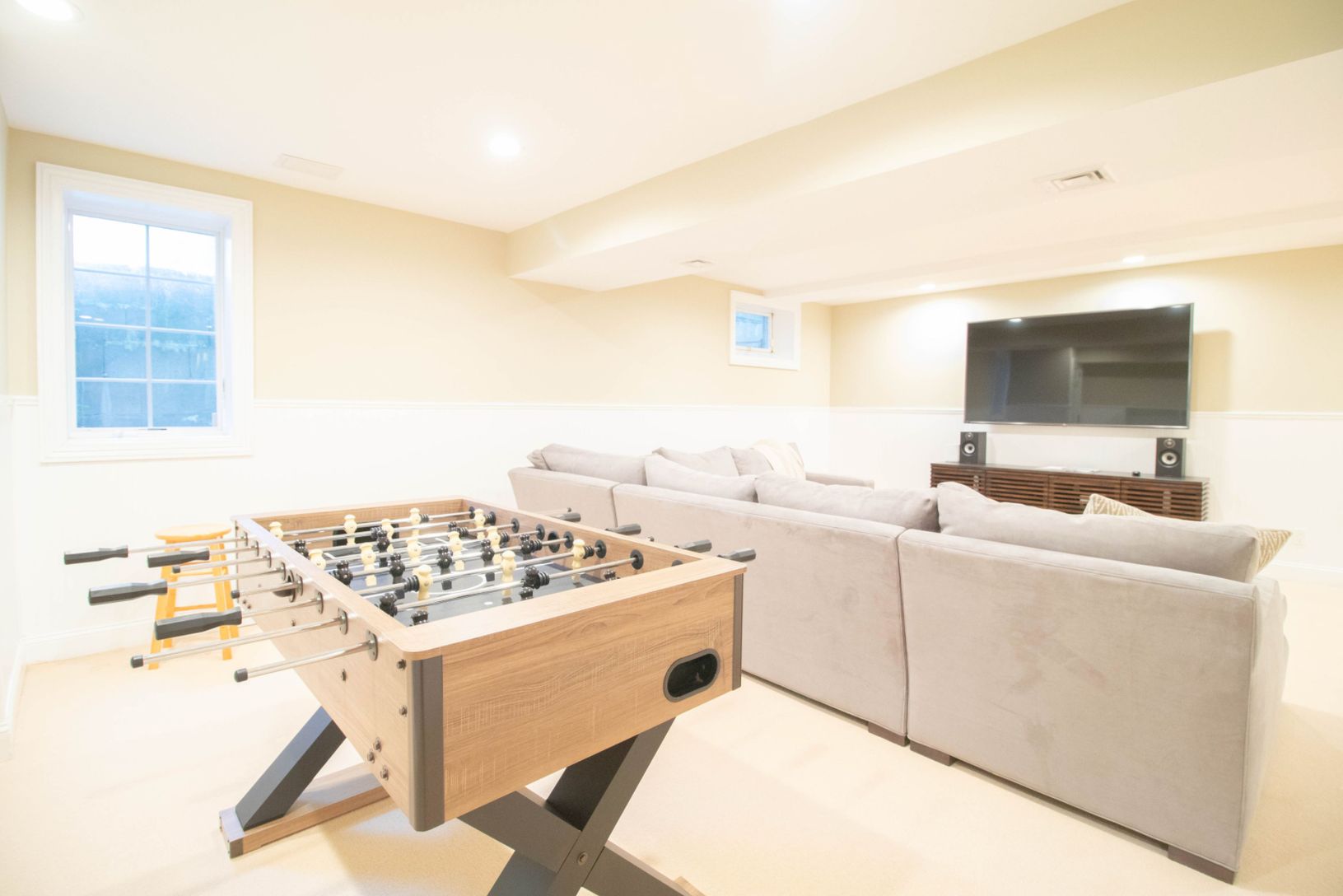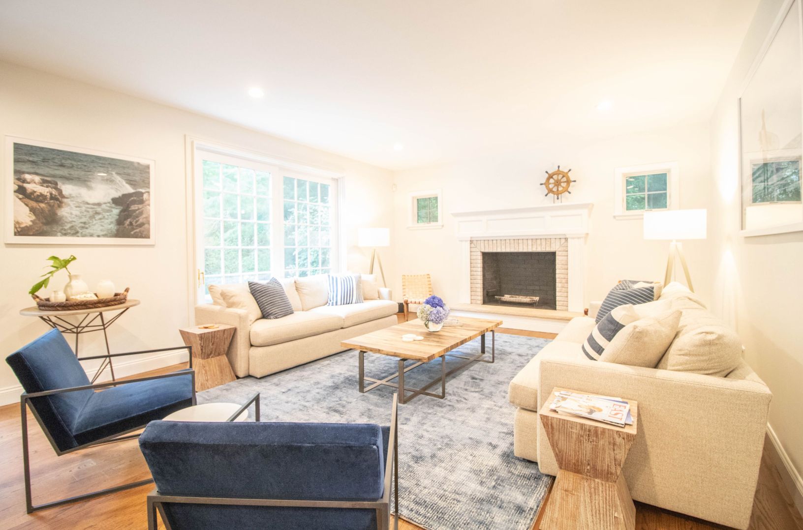 The 3 bedroom and 3.5 bath house with den and finished basement sleeps eight guests. The house has a stylish, Hamptons design and boasts all new furniture, and updated lighting throughout. The vaulted entry foyer leads to a light-filled great room with a fireplace. AAA grade appliances anchor the large kitchen fit for a chef, with generous space for cooking and entertaining. The kitchen adjoins a spacious dining room with backyard views. A co