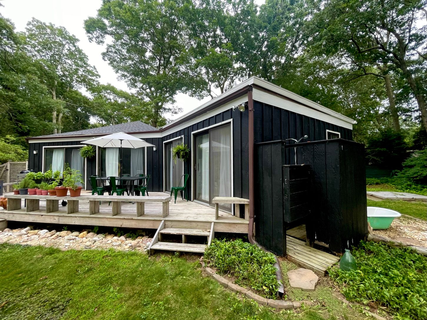 Set on a 1/3 of an acre in the legendary Springs artist community just minutes from the National Historic Landmark Jackson Pollock-Krasner House. This Mid-Century Modern gem is a showcase of innovative design and eye-catching retro flourishes. This sanctuary is situated at a rare angle facing the backyard for full privacy from the street. Floor to ceiling glass windows give a true indoor / outdoor living experience to the deck for summer soiré