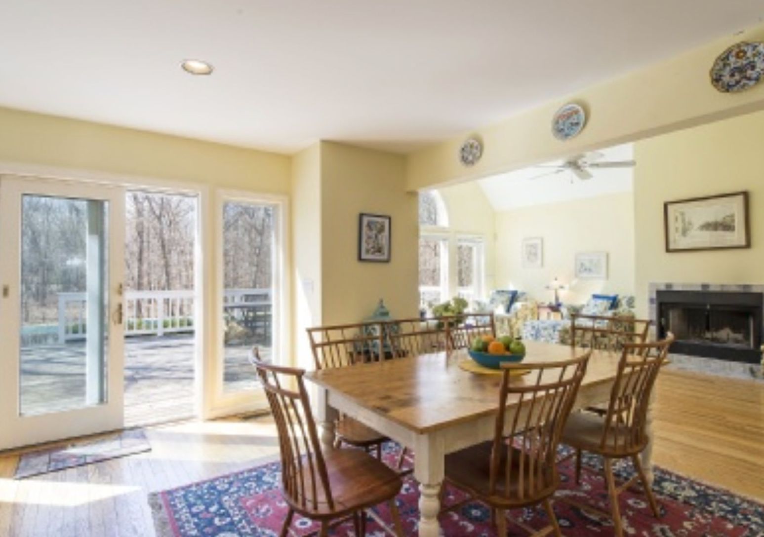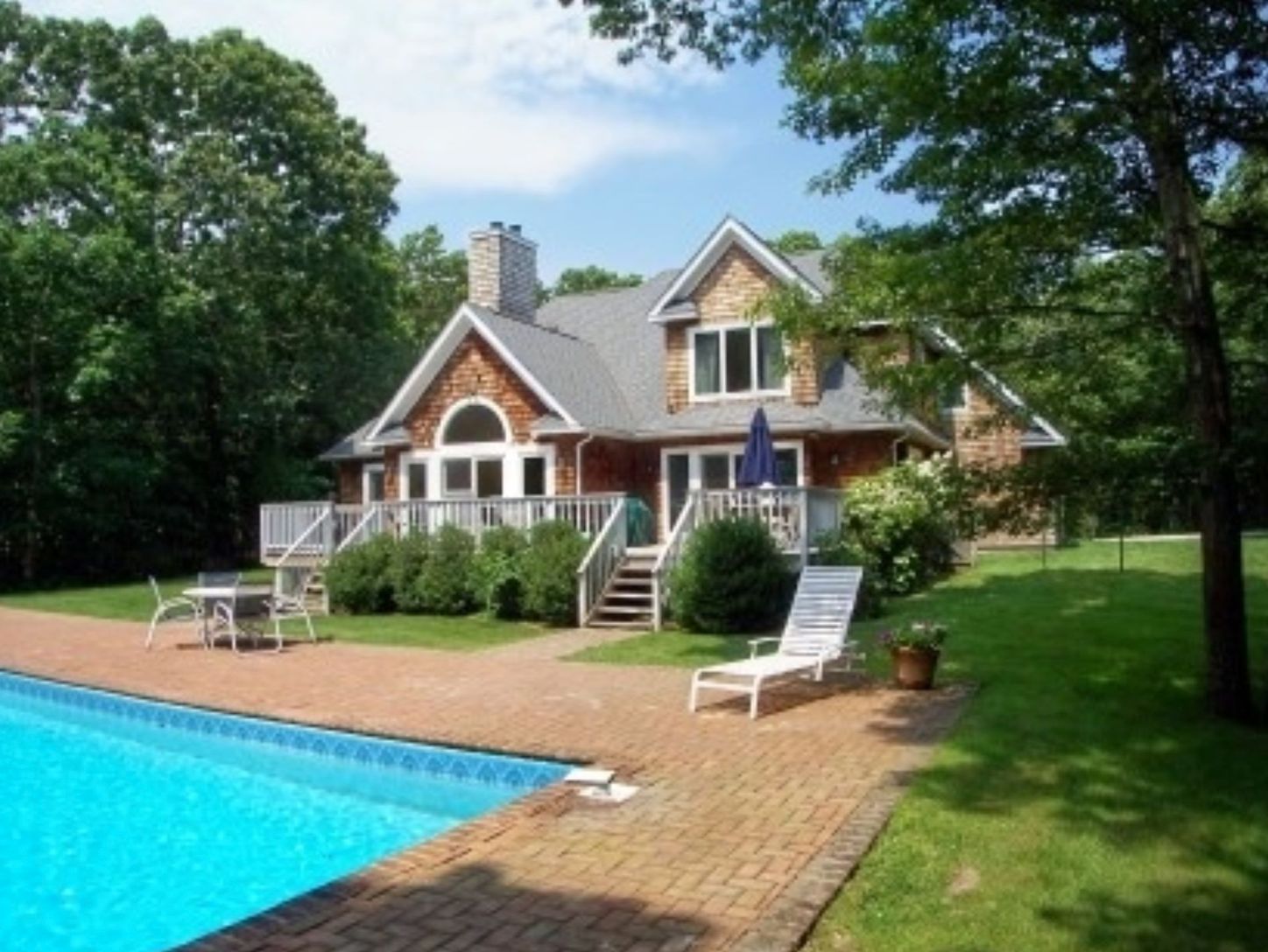 Enjoy your summer in this Springs classic home. The house is situated down a lengthy driveway on a peaceful flag lot with almost 2 acres of tranquility. The first level features an open plan living area with a fireplace and glass deck door, dining and kitchen, a separate TV den, and an en-suite master with terrace doors. Three guest bedrooms and two baths are located on the second story, providing ample space for a big family.