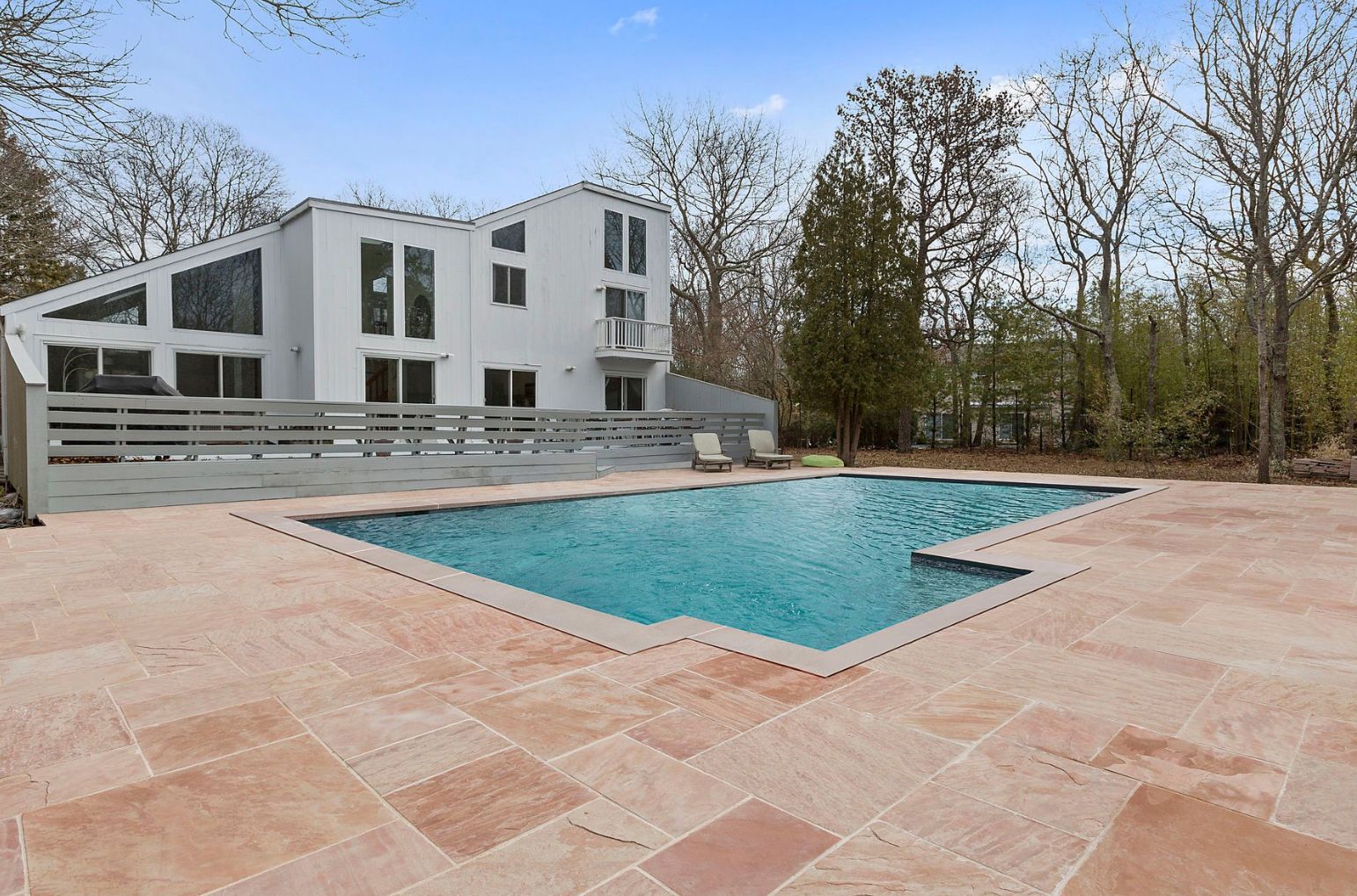 Contemporary style home features four bedrooms and three baths. This home is bright and spacious throughout. On the first level you will find the master suite. Outside amenities feature the in ground pool heater pool surrounded by the large decking with tons of seating as well as the outdoor shower. This home is great for a Hamptons getaway