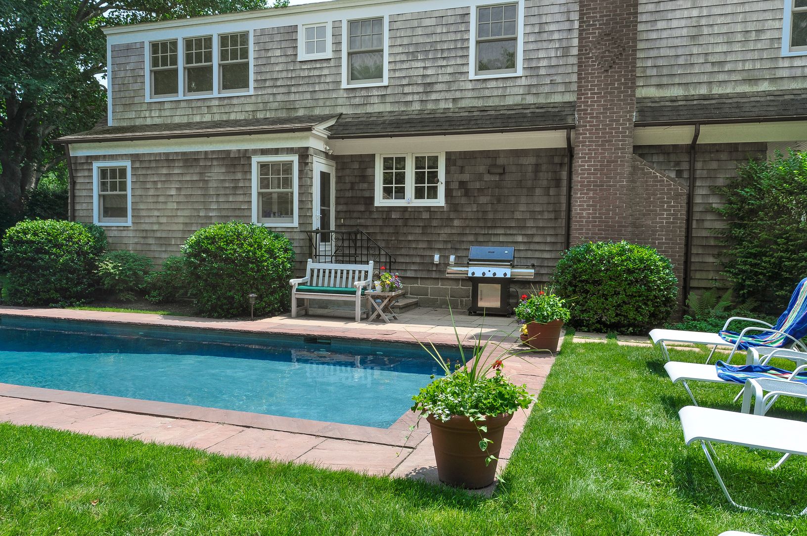 Located on a beautiful village lane at the center of East Hampton culture, this 1930s cottage has been recently renovated with attention to quality and detail. There are four spacious bedrooms, three baths, a full dining room, living room with fireplace, well-equipped kitchen and central air-conditioning. Relax and sunbathe by the heated pool or enjoy a novel on the front porch. Sited in a special and secluded spot that is in close proximity t