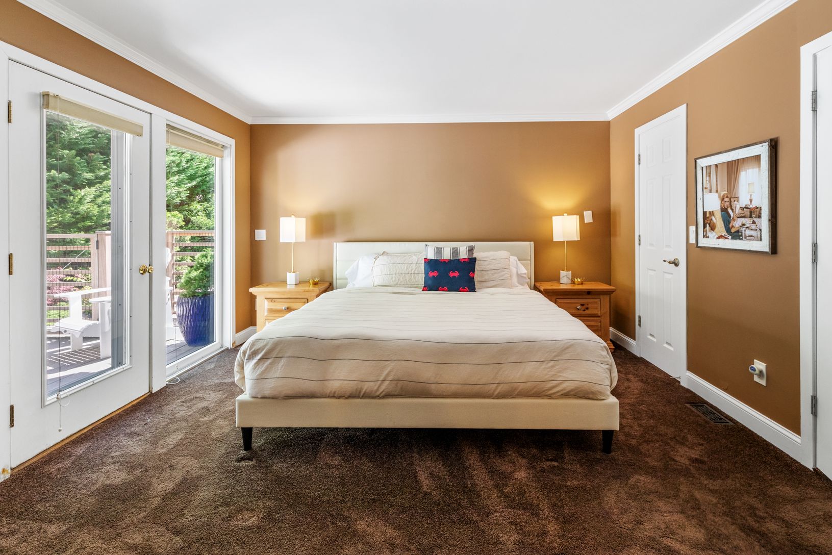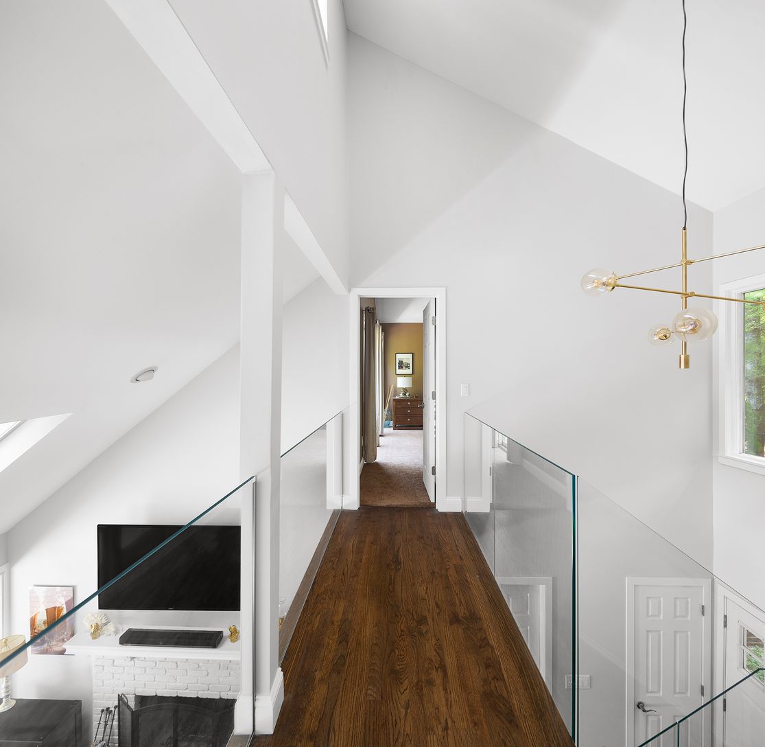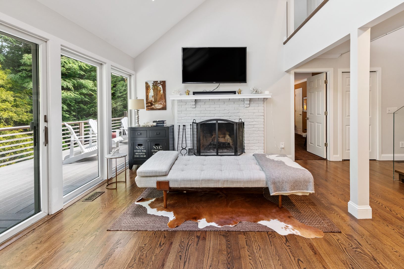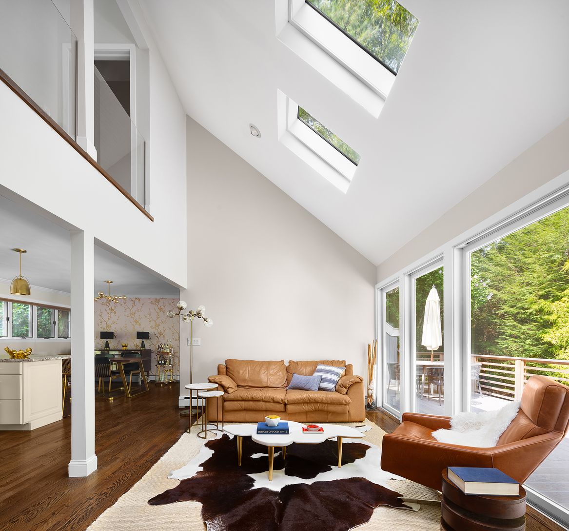 Chic and refined, this renovated, impeccably maintained, and thoughtfully furnished Northwest Woods home offers the perfect combination of serenity and enjoyment. Upon entering the home from your secluded and wooded driveway, you’re welcomed by walls of glass window, rowed evergreens, and a sophisticated triplex staircase clad in glass. The vaulted open living room is bathed in natural light via skylight windows and made for relaxation w/ work