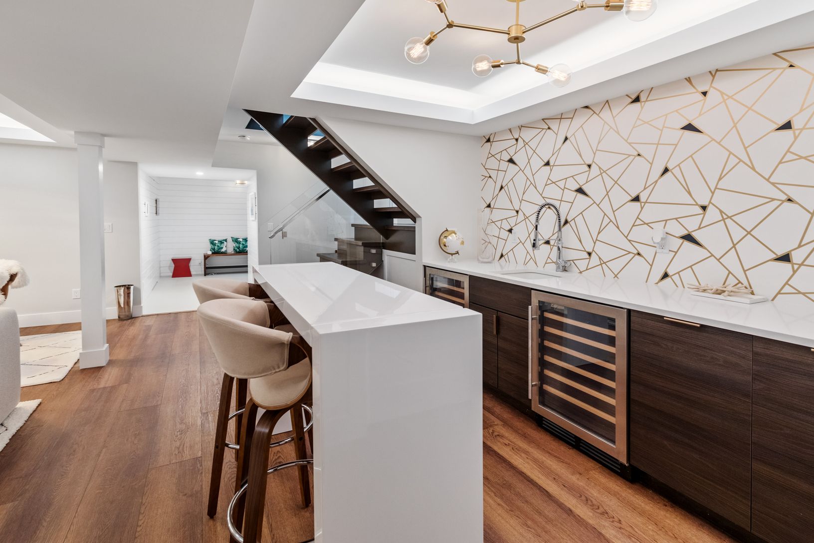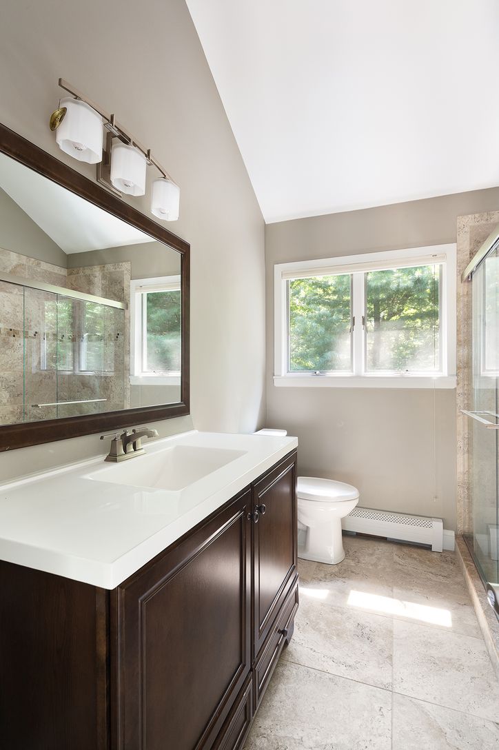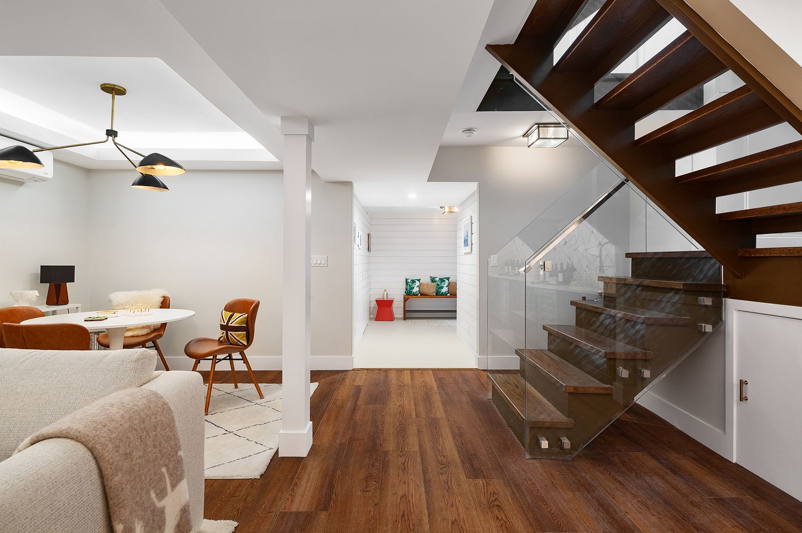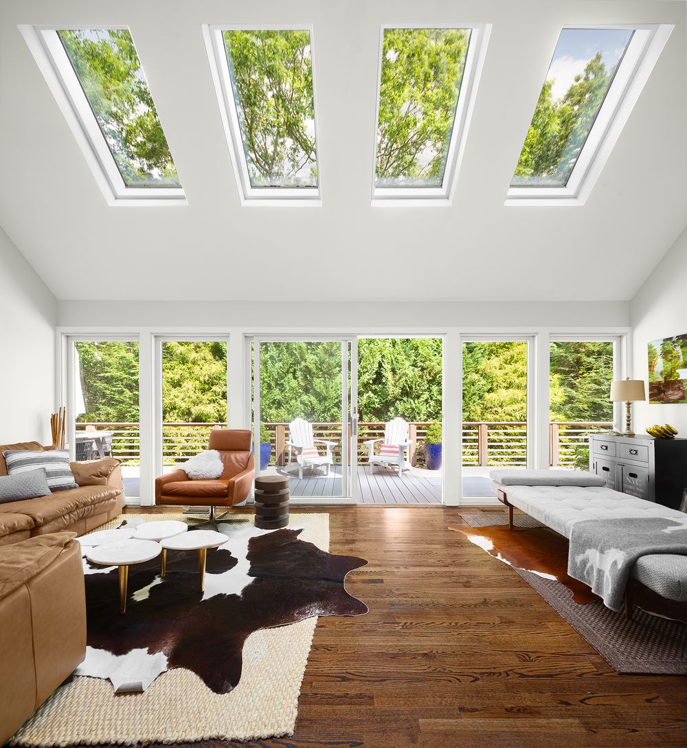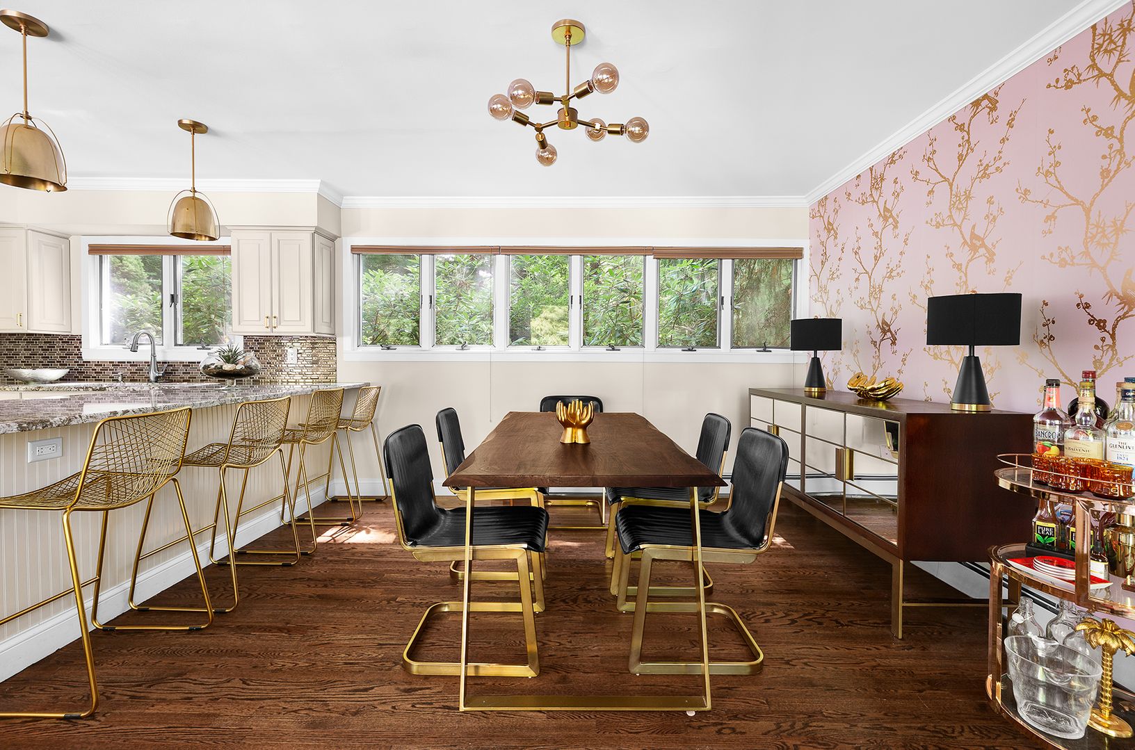 Chic and refined, this renovated, impeccably maintained, and thoughtfully furnished Northwest Woods home offers the perfect combination of serenity and enjoyment. Upon entering the home from your secluded and wooded driveway, you’re welcomed by walls of glass window, rowed evergreens, and a sophisticated triplex staircase clad in glass. The vaulted open living room is bathed in natural light via skylight windows and made for relaxation w/ work
