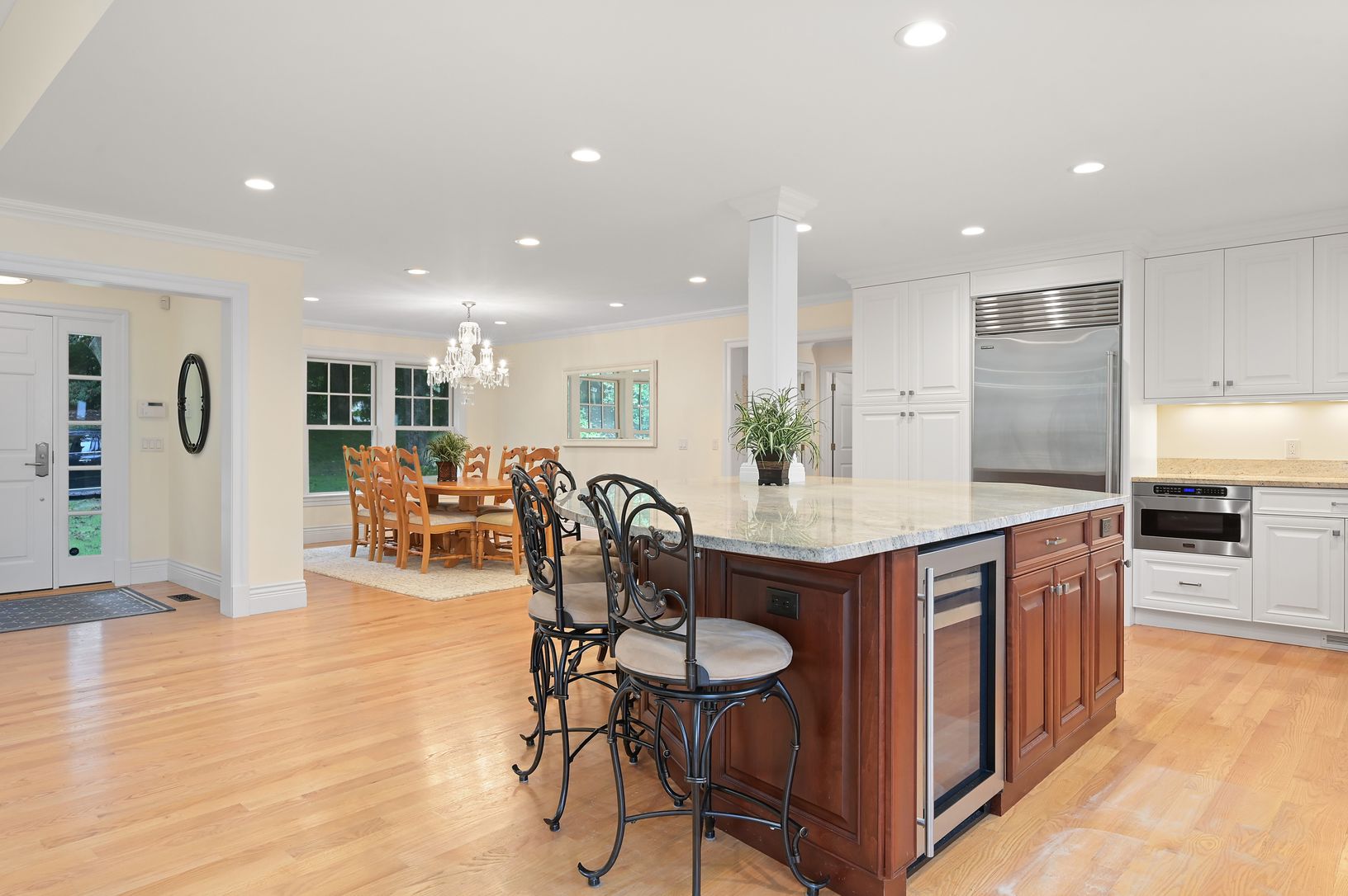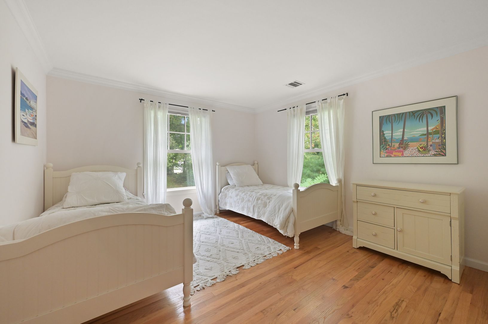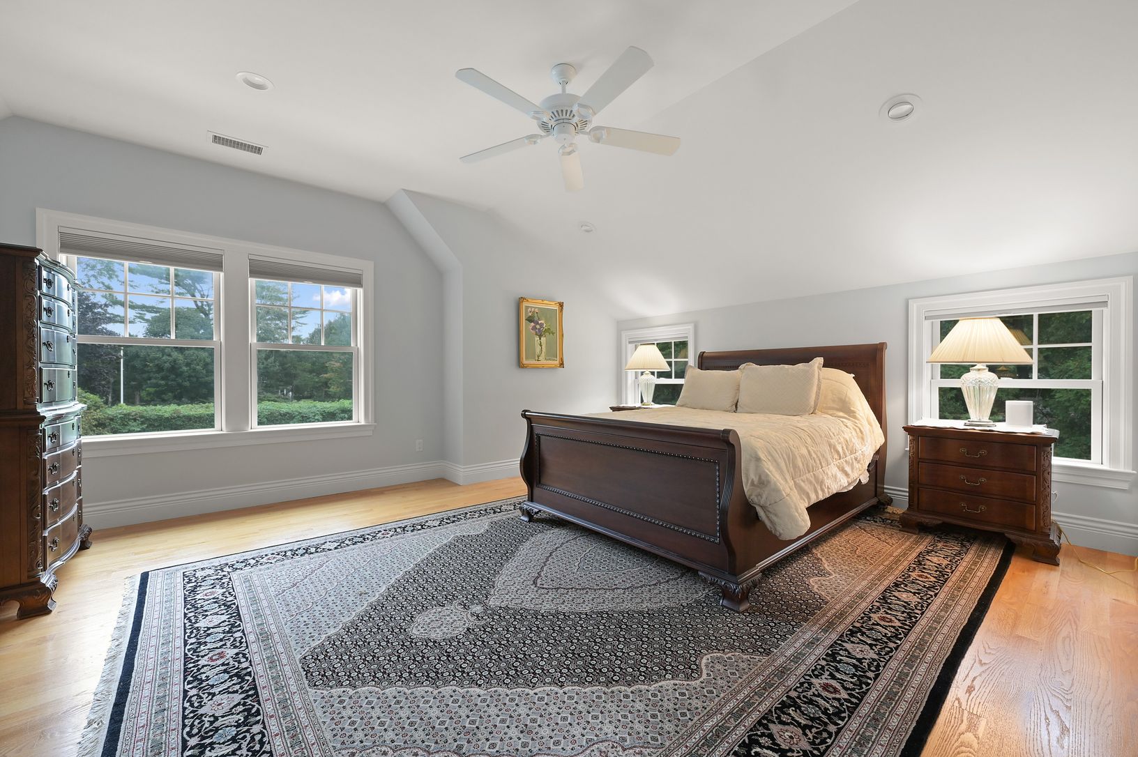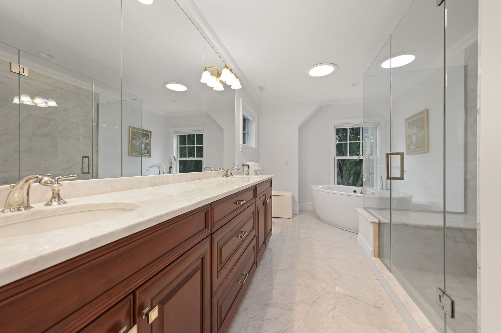 Flooded with light this newly expanded and upgraded home in East Hampton Village has it all. Enter the home to soaring ceilings, an open concept gourmet kitchen with a large center island great for informal entertaining. Also on the first floor a formal dining room, office, separate den with flat screen TV, and a full bath that opens up to the pool area. There are five bedrooms and five full baths. A large beautiful master suite on the sec