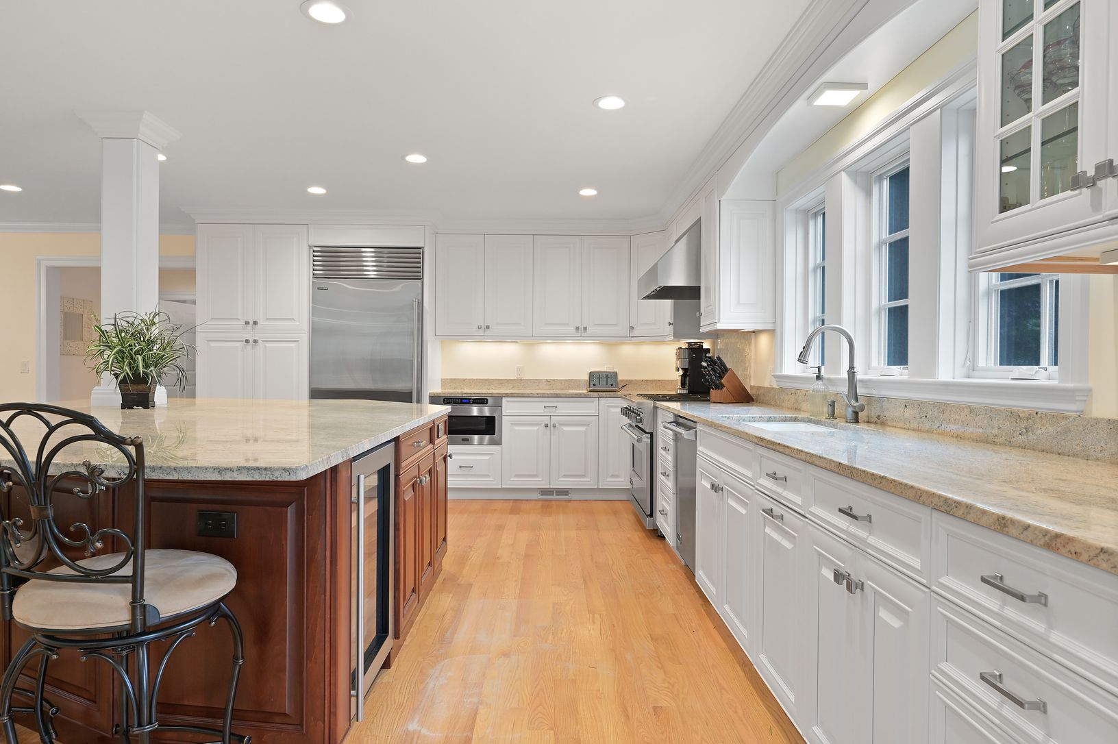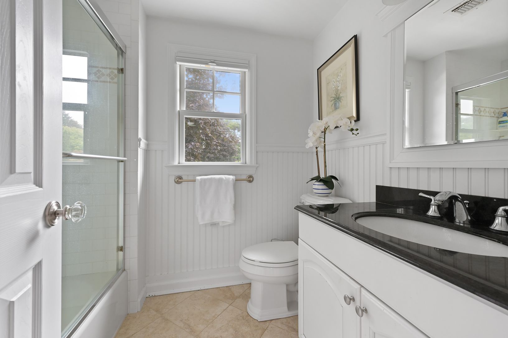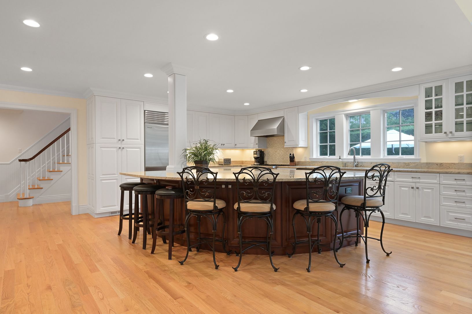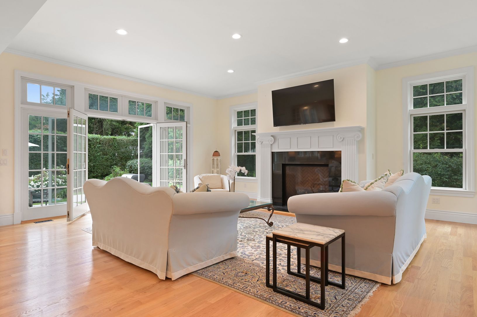Flooded with light this newly expanded and upgraded home in East Hampton Village has it all. Enter the home to soaring ceilings, an open concept gourmet kitchen with a large center island great for informal entertaining. Also on the first floor a formal dining room, office, separate den with flat screen TV, and a full bath that opens up to the pool area. There are five bedrooms and five full baths. A large beautiful master suite on the sec