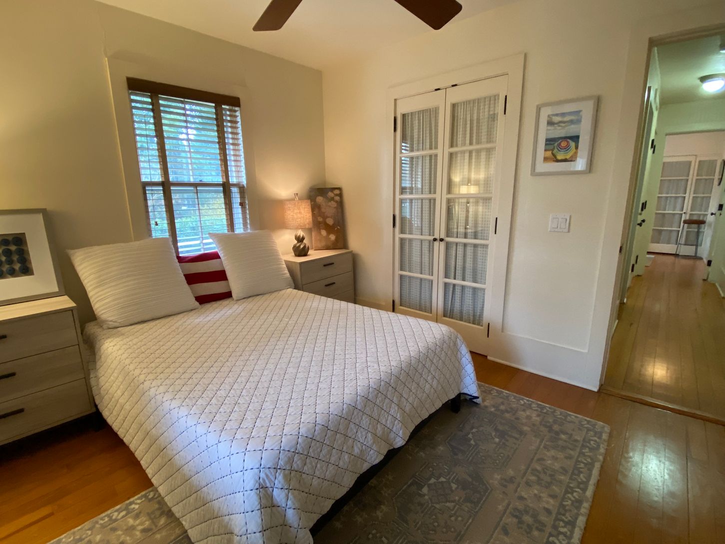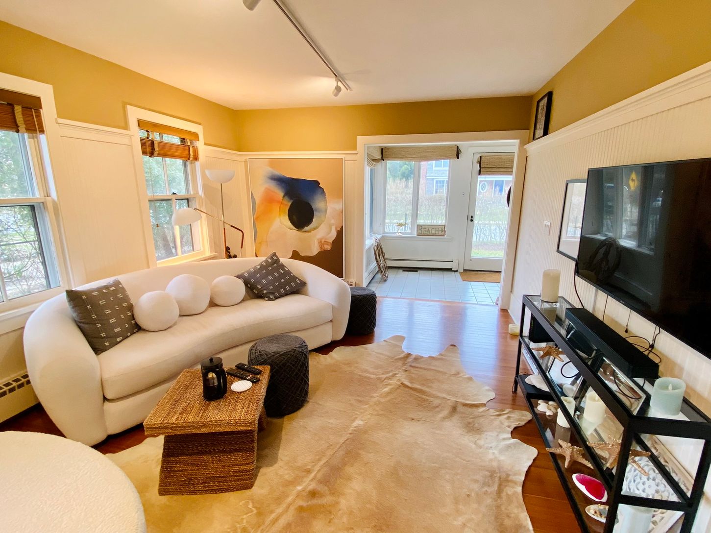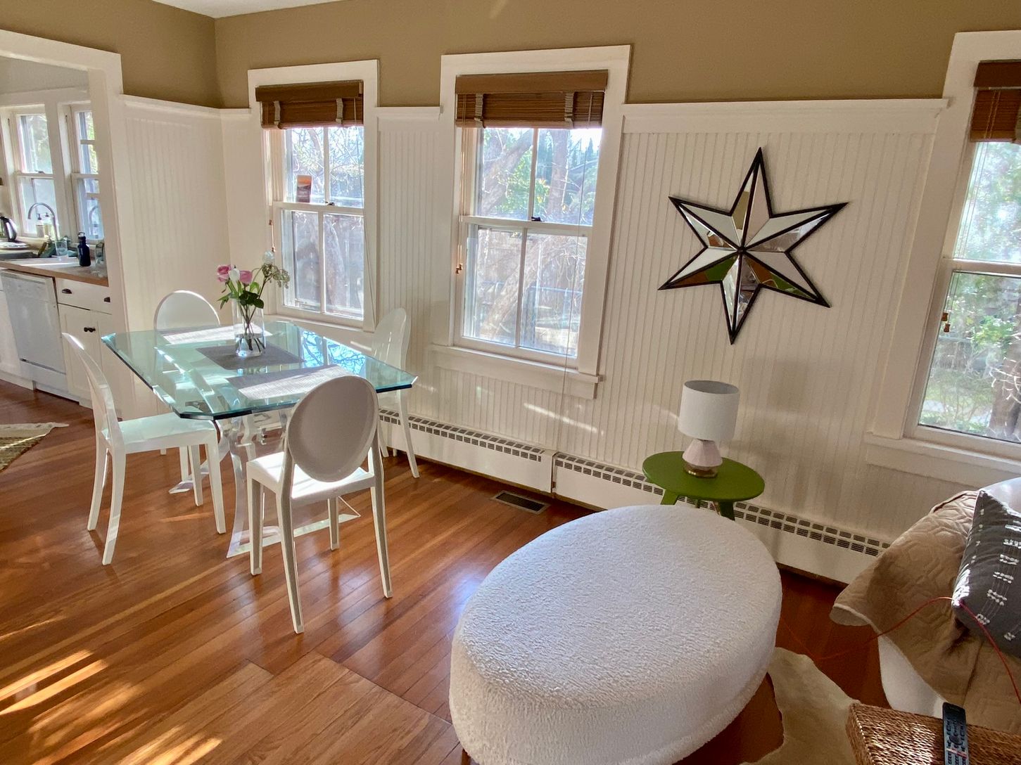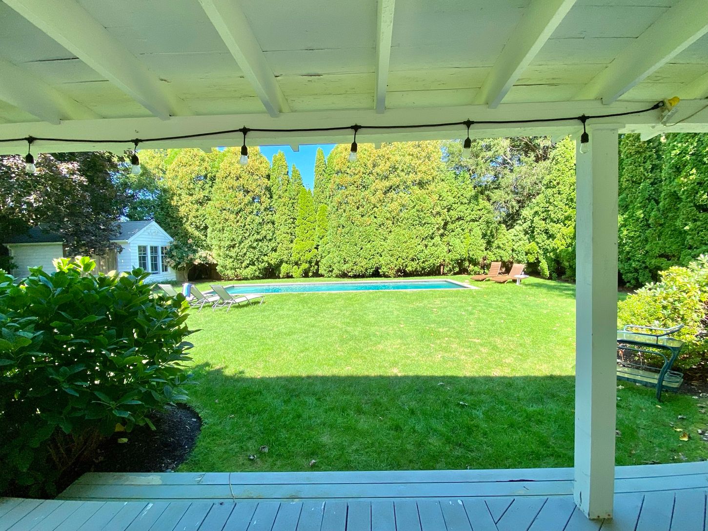 This enchanting Sears-Roebuck house is situated on a beautiful lot with mature trees, flowering bushes and a heated gunite pool. In addition, there is a separate pool house which is ideal for entertaining! The pool house is fitted with a half-bath, a television, WiFi and an outdoor shower. The home is surrounded by two adjoining decks for day and evening gatherings or the perfect barbecue - casual dining at its best! The house demonstrates sou