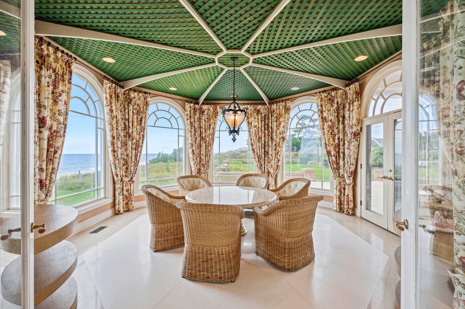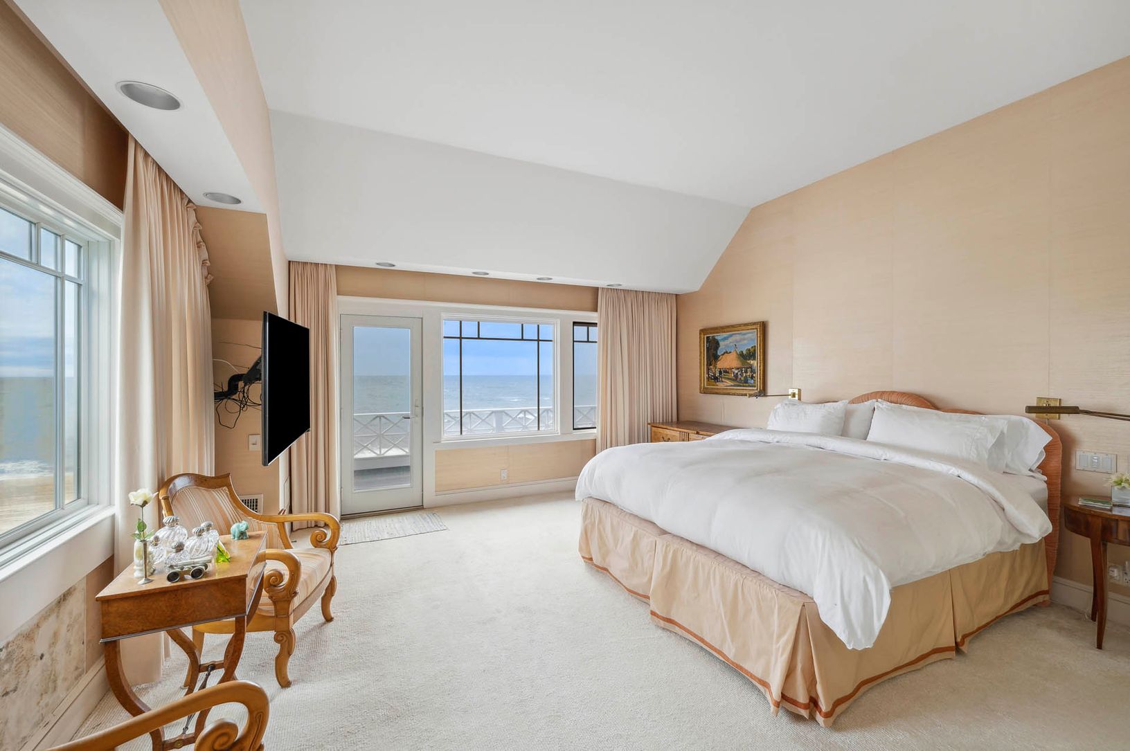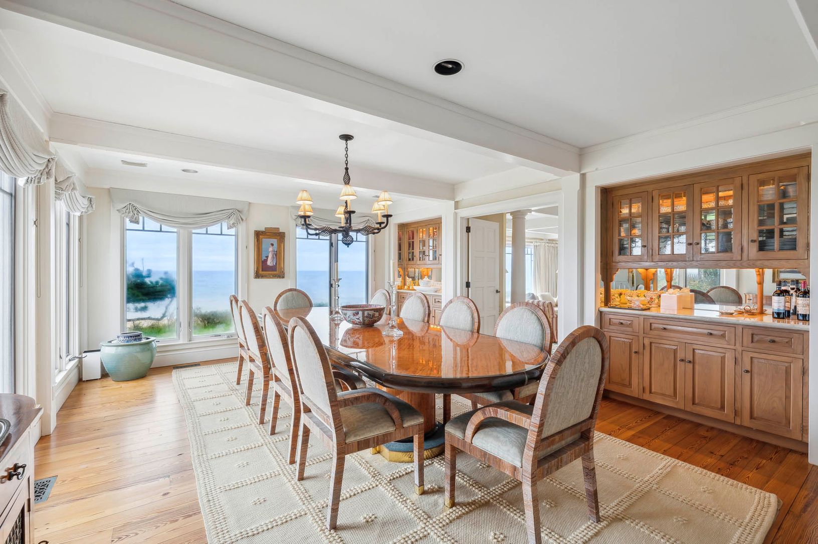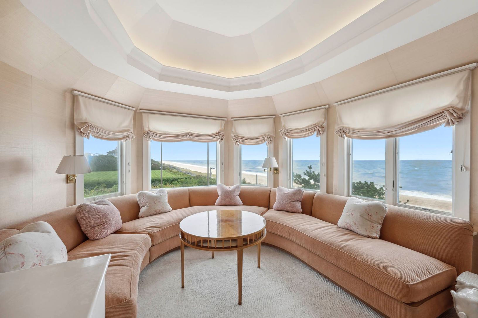 Nestled at the end of the exclusive Lily Pond Lane and accessed via a secluded driveway, this 3 acre+/- beachfront estate sits along the dunes of East Hampton, offering expansive views of the ocean. Mostly Dune, which the estate is appropriately named, epitomizes opulence, granting exclusive access to its pristine, white sand shorelines and offering unrivaled ocean views from most of the home. The first floor consists of a sprawling living roo