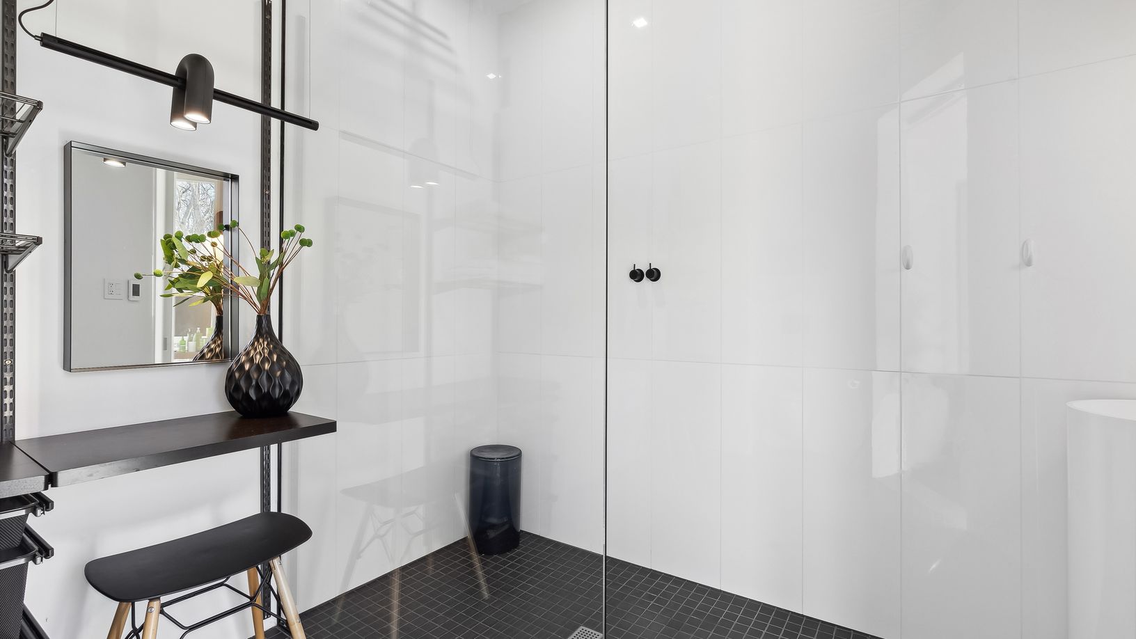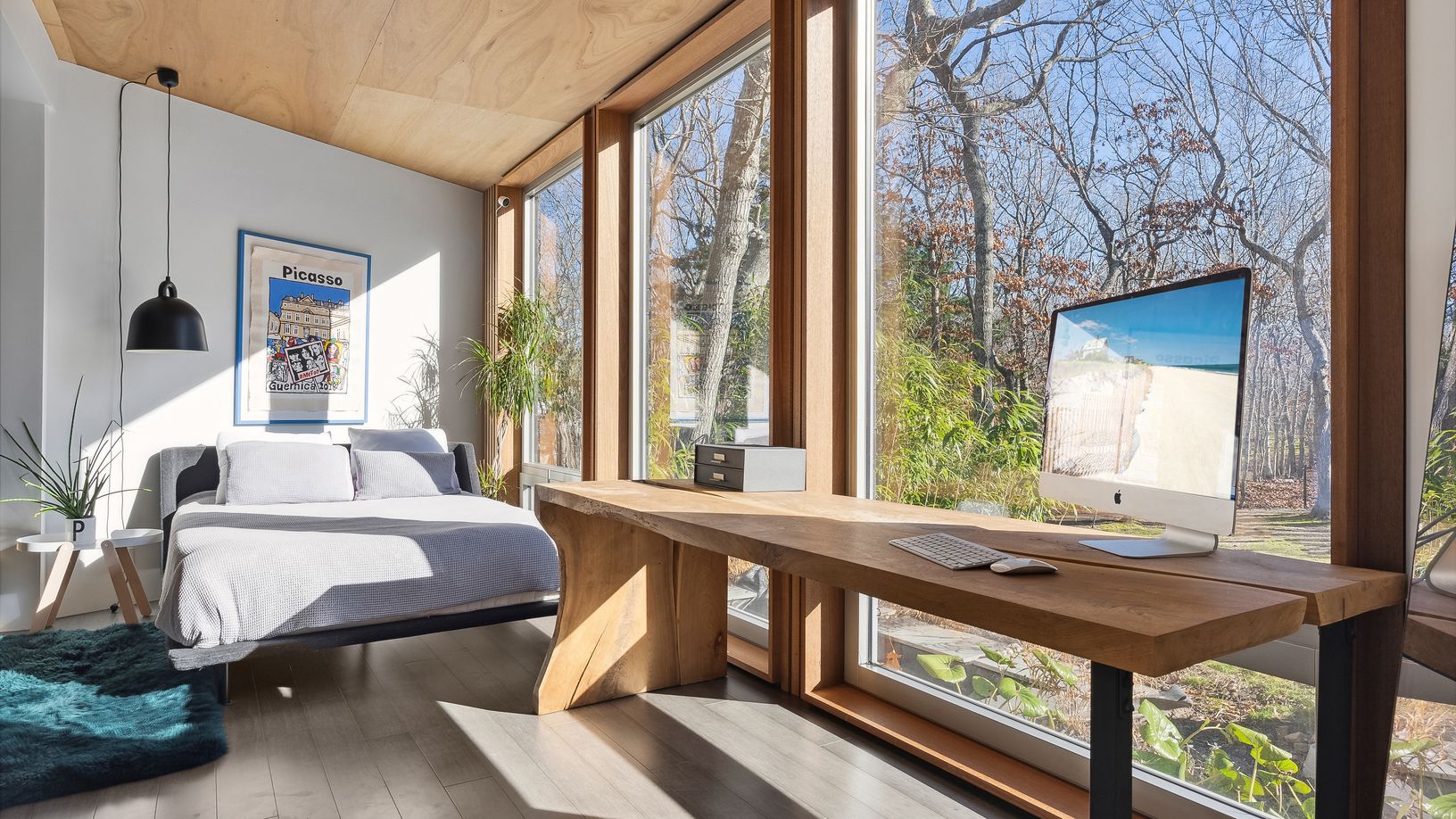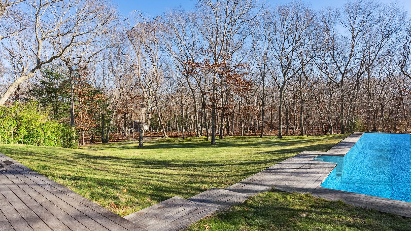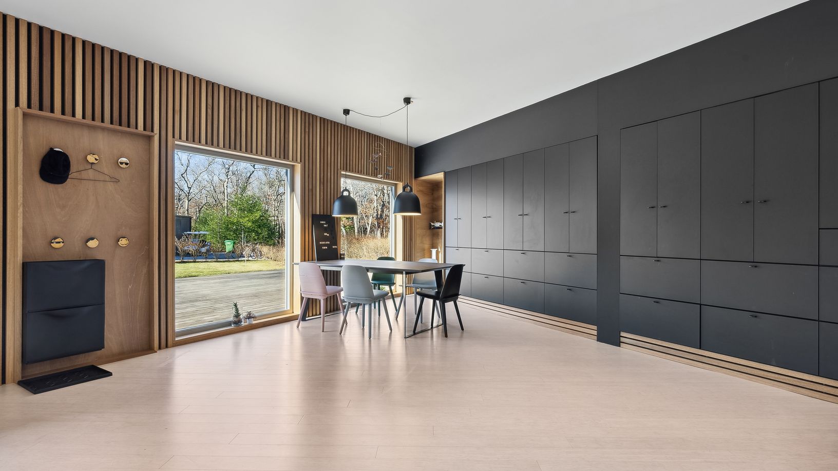 Experience modern elegance in this architectural masterpiece by Hans Noe. Nestled on a 3-acre property, this single-story gem offers three bedrooms and three bathrooms. The open-plan living room, adorned with a wall of windows and a wood-burning stove (RAIS), seamlessly connects to the kitchen. The master bedroom suite boasts an en-suite bathroom with radiant heat floors and captivating views of the seventy-five-foot-long pool, complemented by
