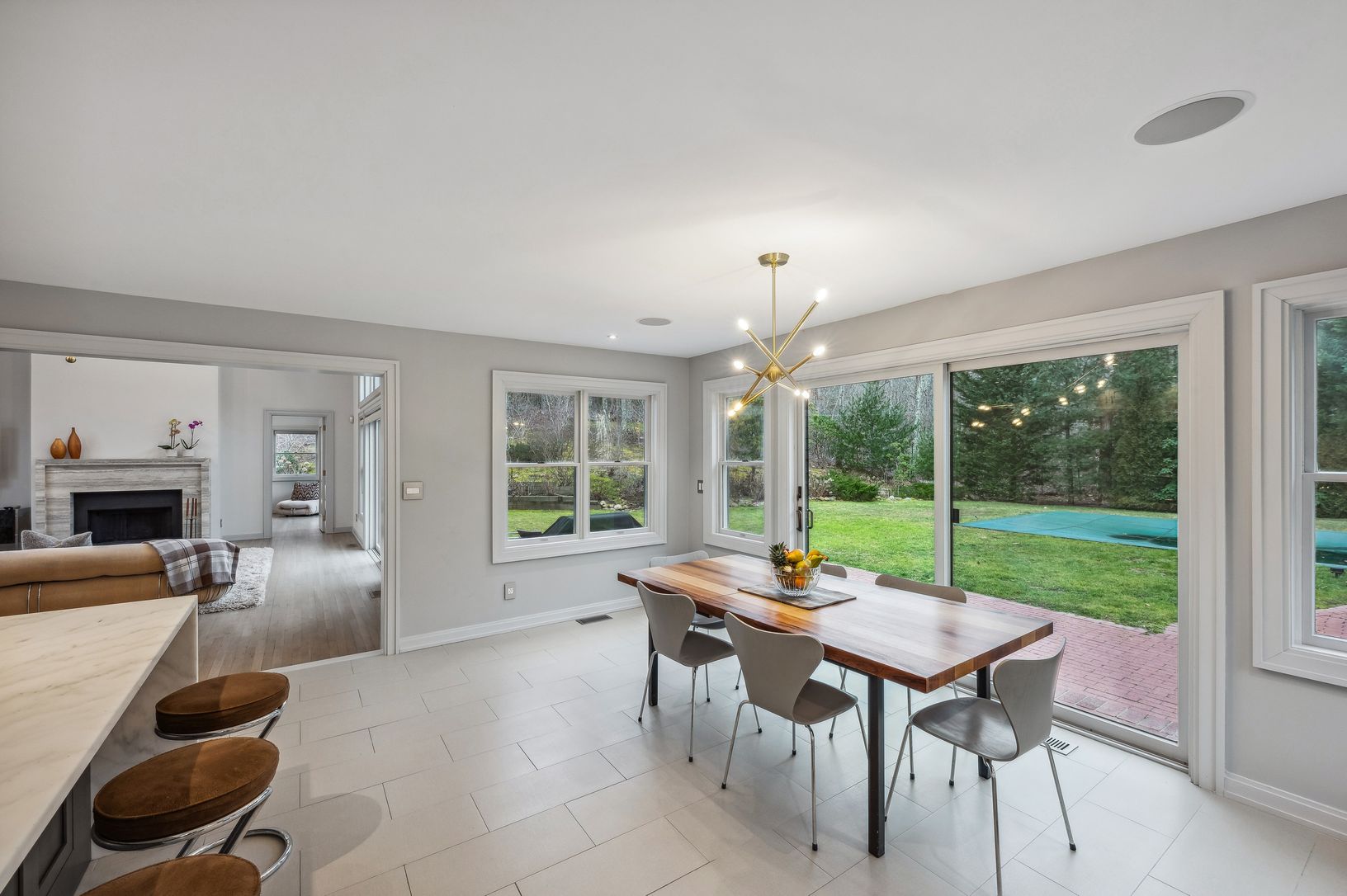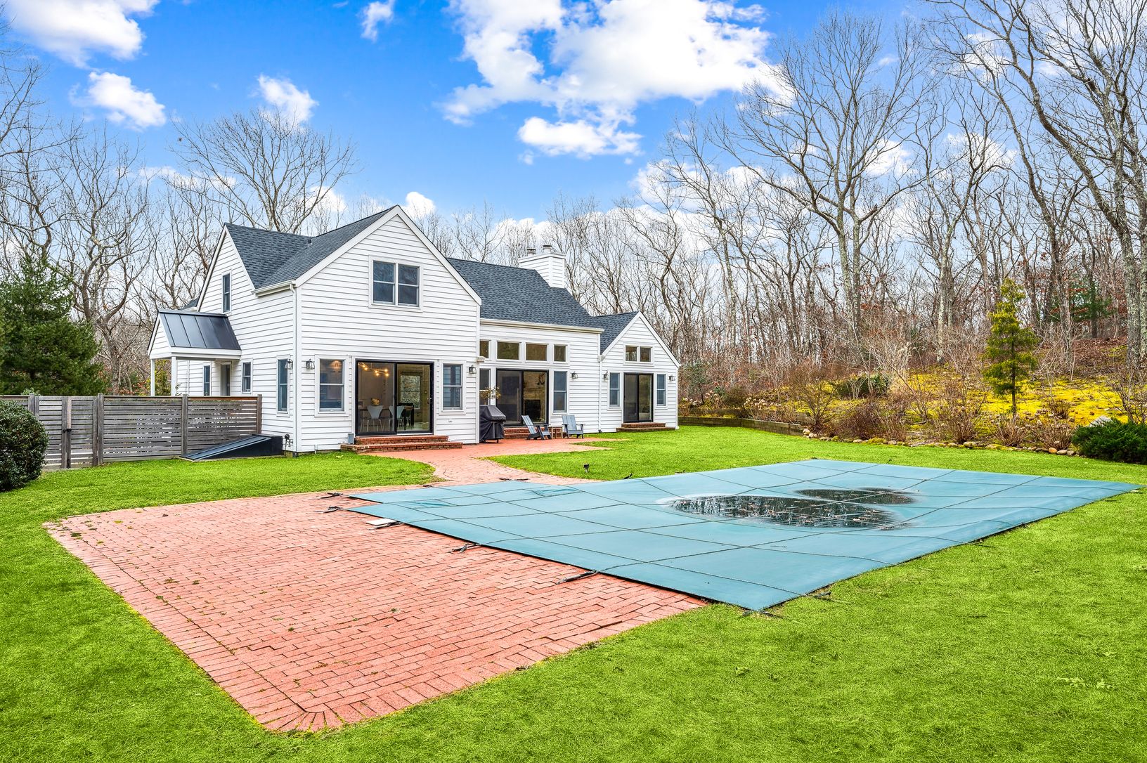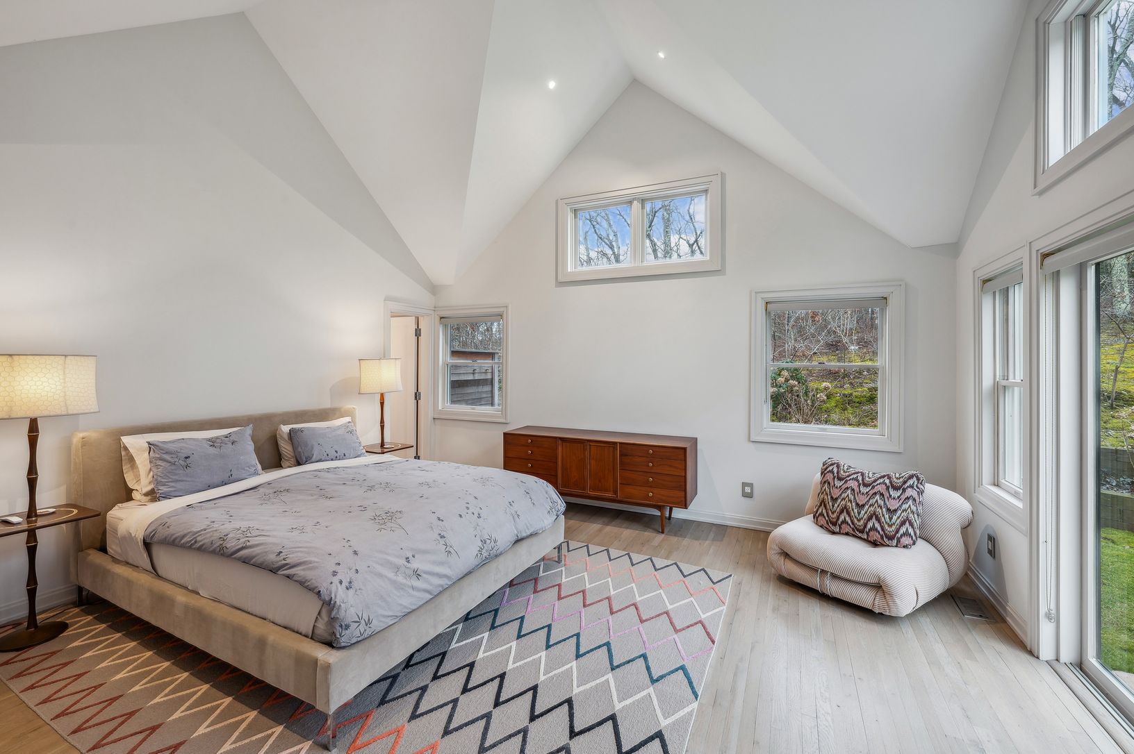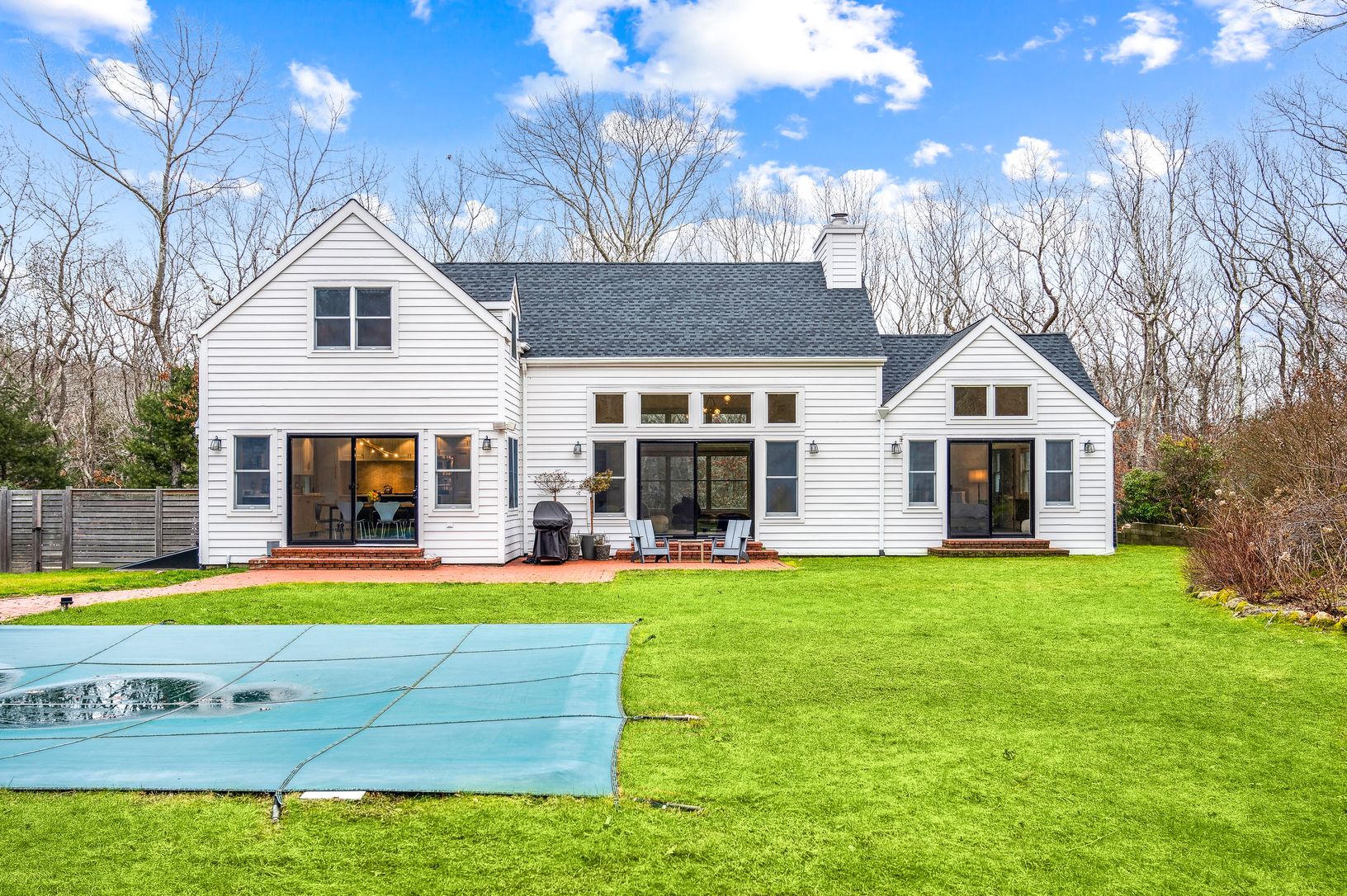 DESIGNER OASIS IN EAST HAMPTON. No detail was spared with the modern renovation of this impeccably styled, open, airy and light filled modern beach house set far back from the road. Tucked away on a private 1.1 acre in peaceful Northwest Harbor, backing to a reserve, located in the Hampton Waters Community with private bay beach access and community bulkhead/launching dock. Stunning open eat-in kitchen with sliders overlooking the heated salt