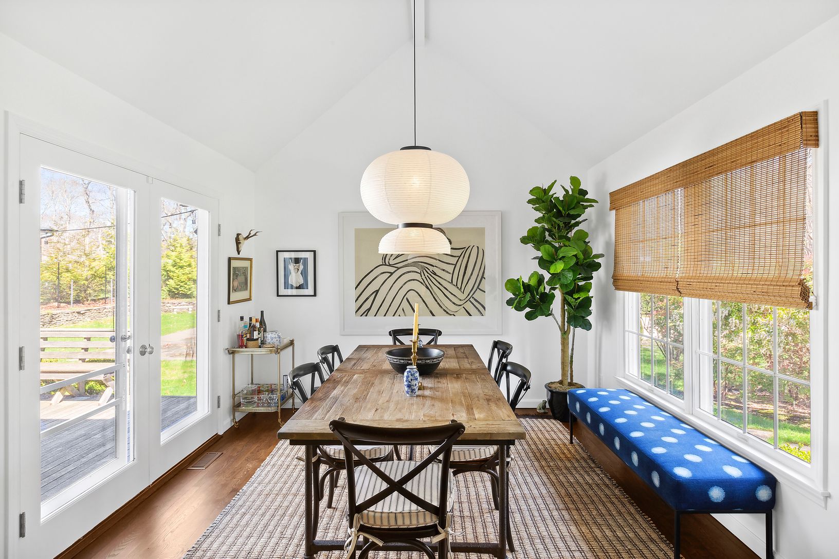 Discover the perfect retreat in East Hampton with this newly furnished traditional 3+ bed, 3.5 bath home, nestled just outside the village. Situated on a comfortable half acre, this spacious 2200 square foot residence offers everything you need for a luxurious Hamptons getaway. The main floor welcomes you with ample living space, a cozy wood-burning fireplace, and a separate dining area flooded with natural light. The expansive kitchen was rec